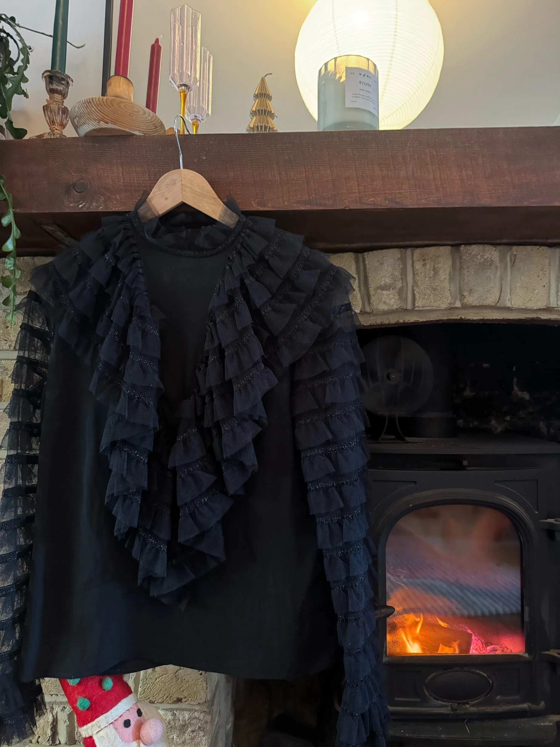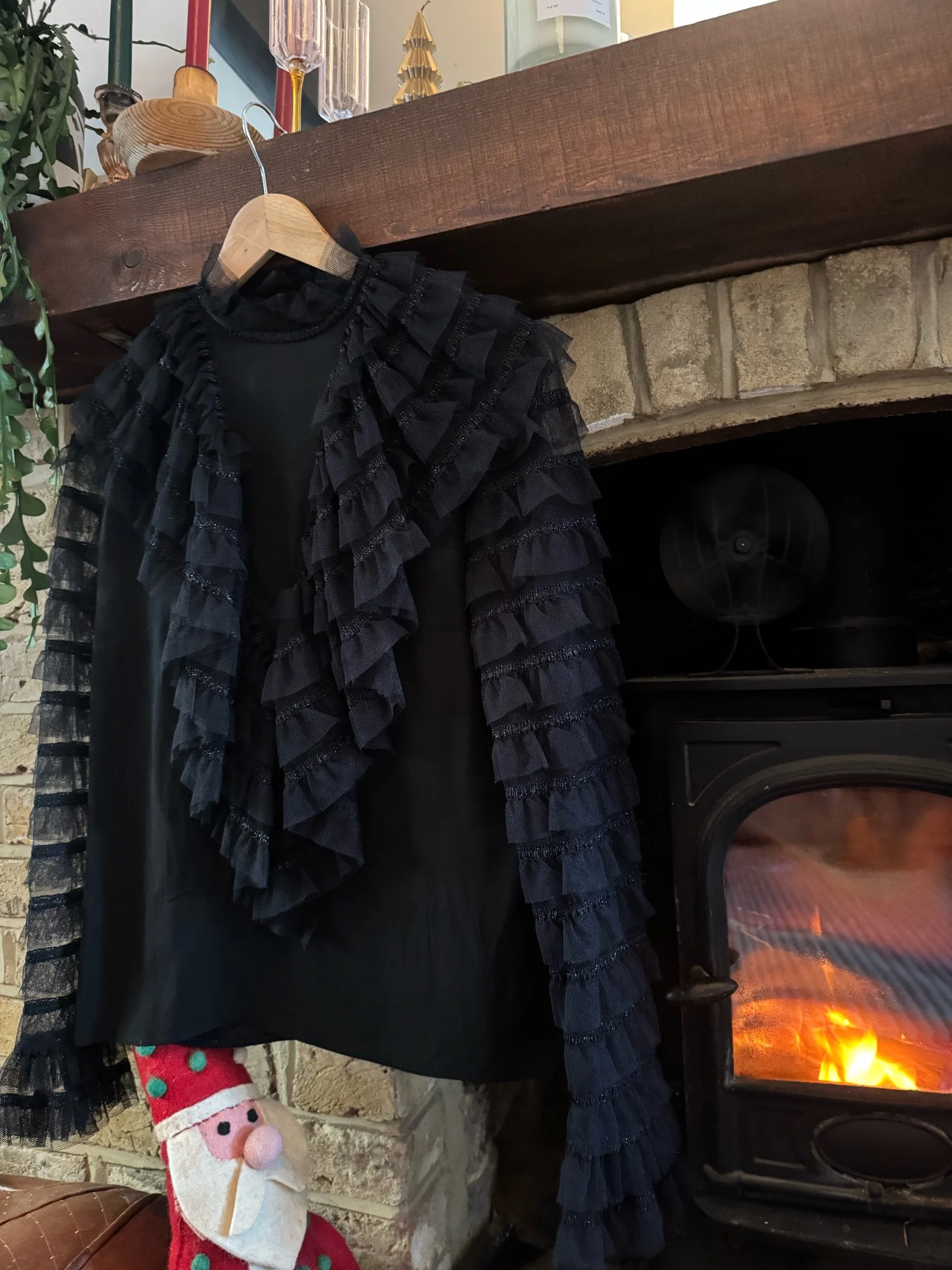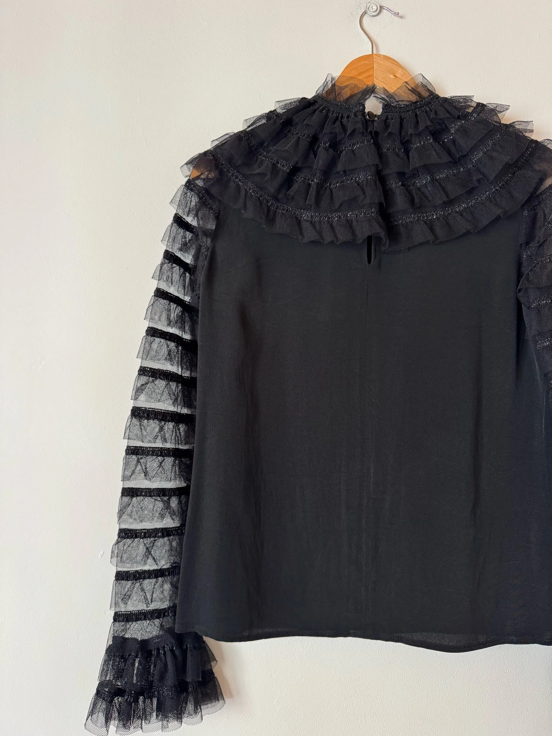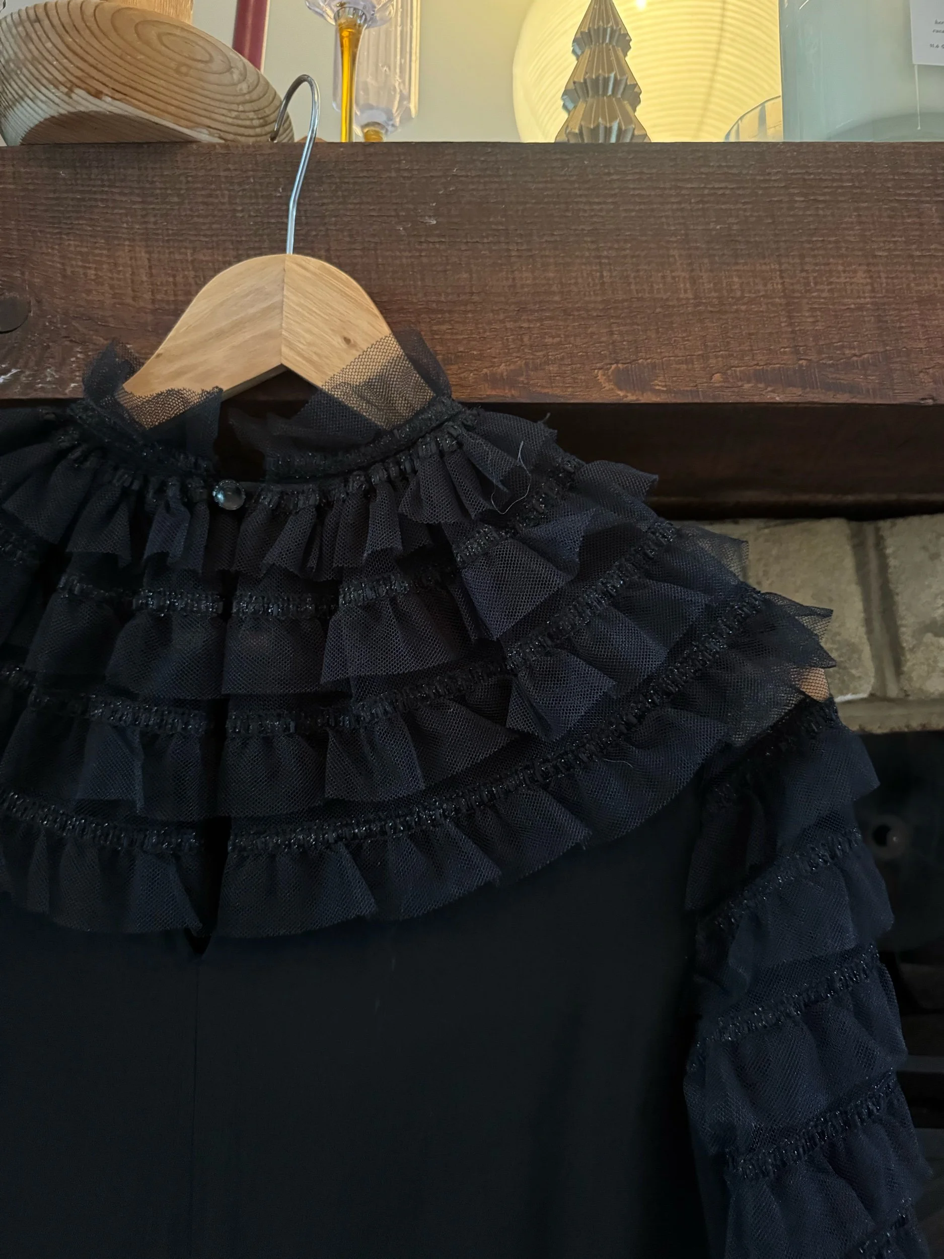 Gorgeous ruffle blouse, 70s era. Such wonderful ruffle work, so much volume and yet so chic. Will work very hard in your waredrobe!