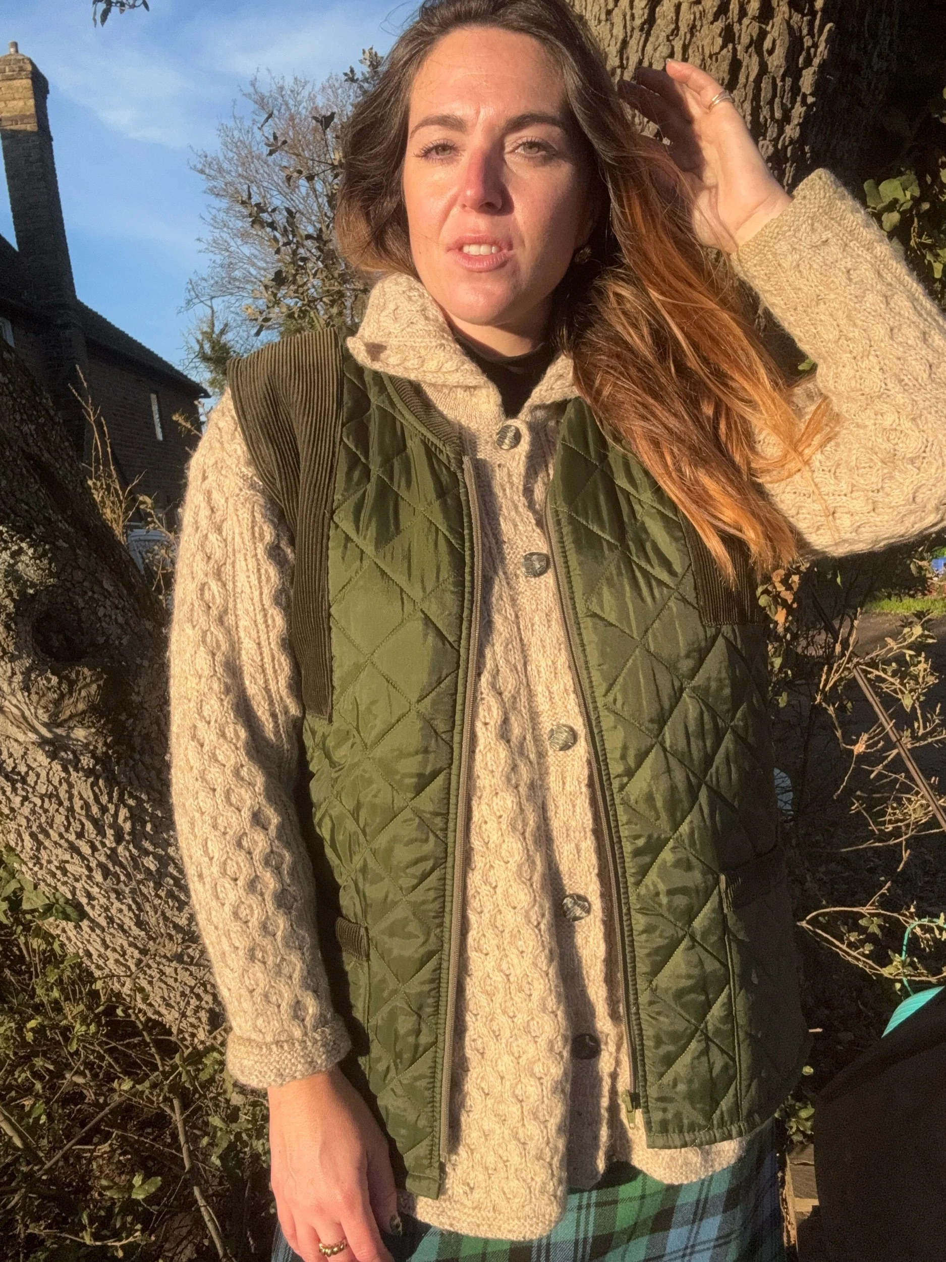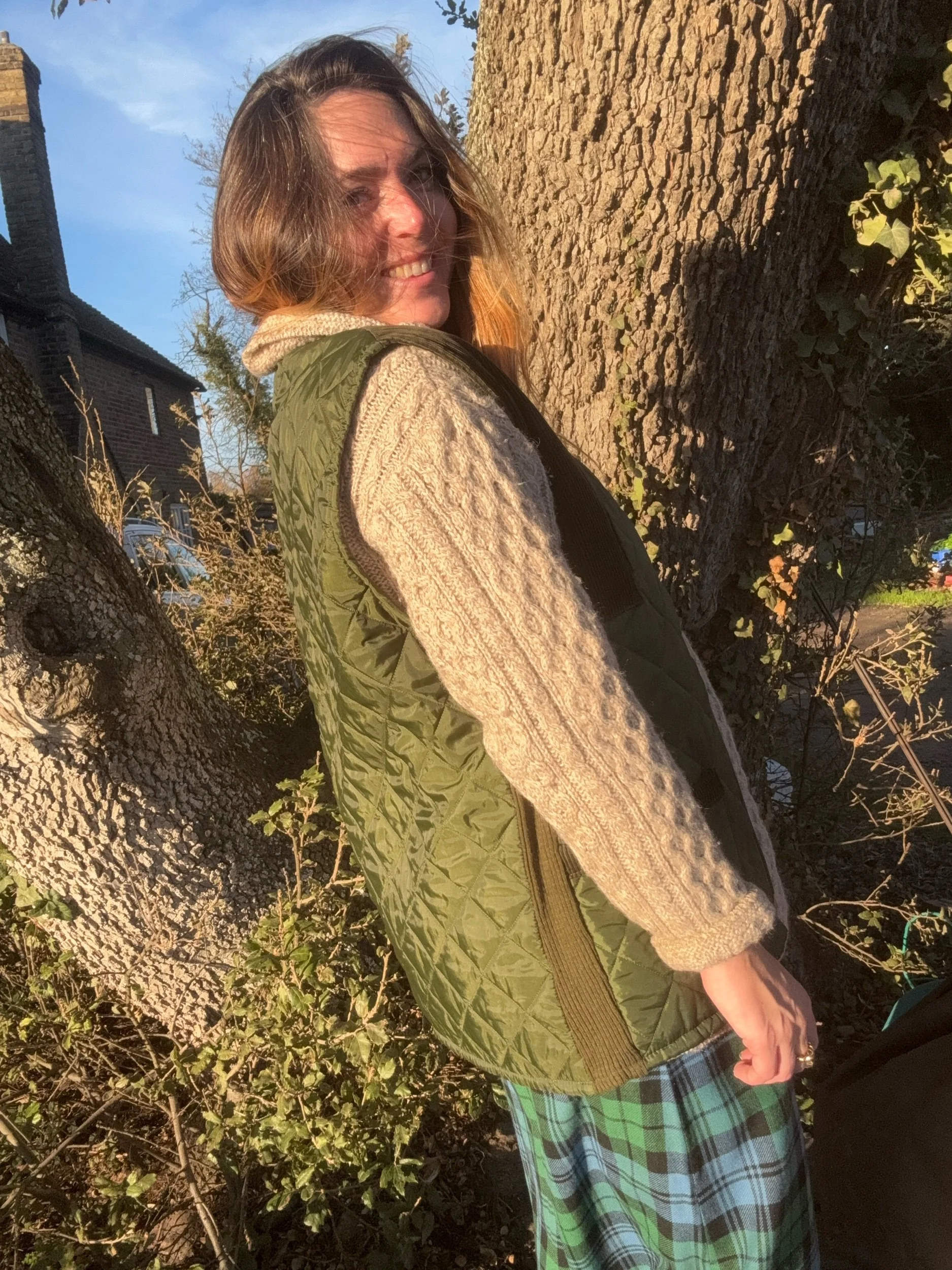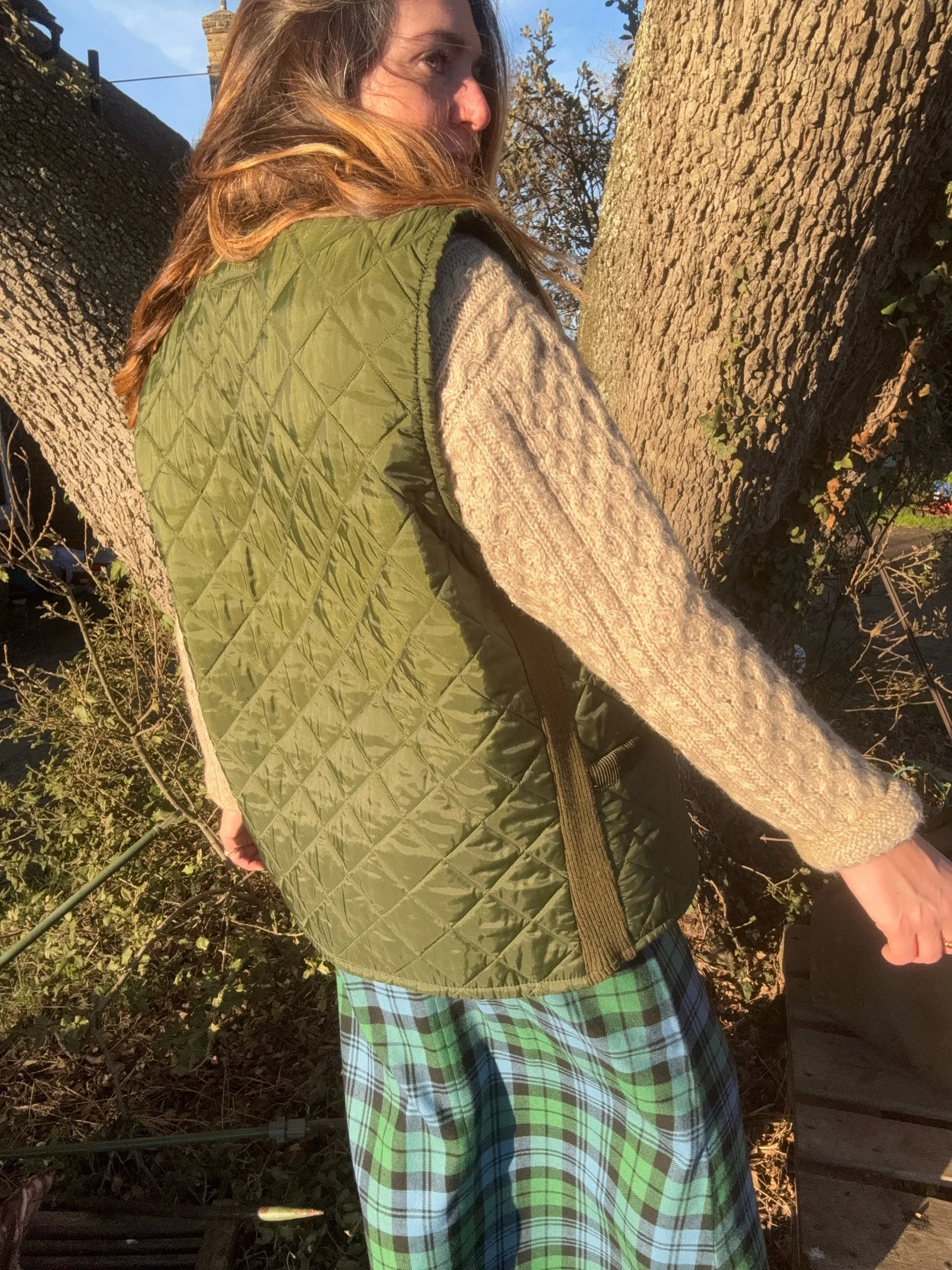 Barbour style waistcoat that’s super handy to have on beach/ forest/ dog walks. Zips up an has room for a cosy jumper underneath!