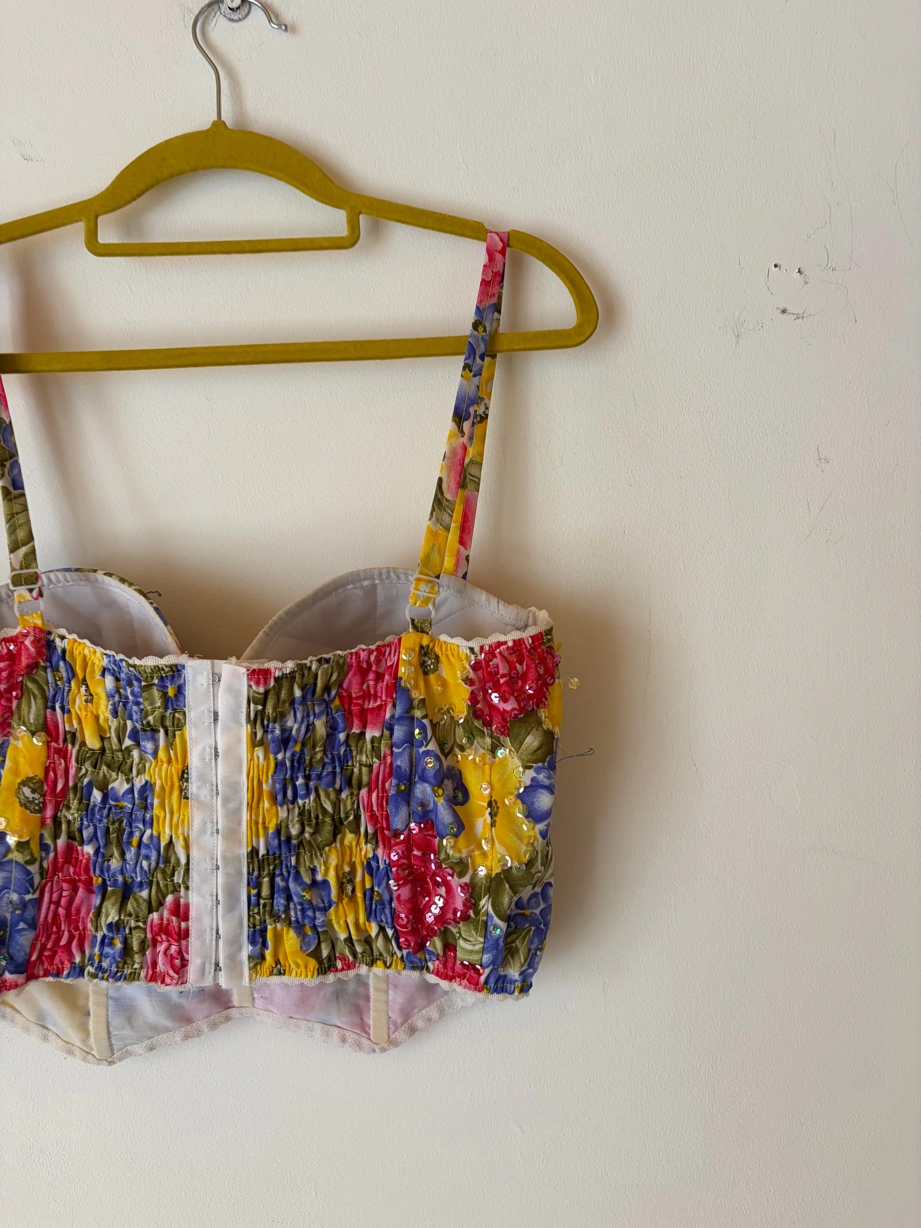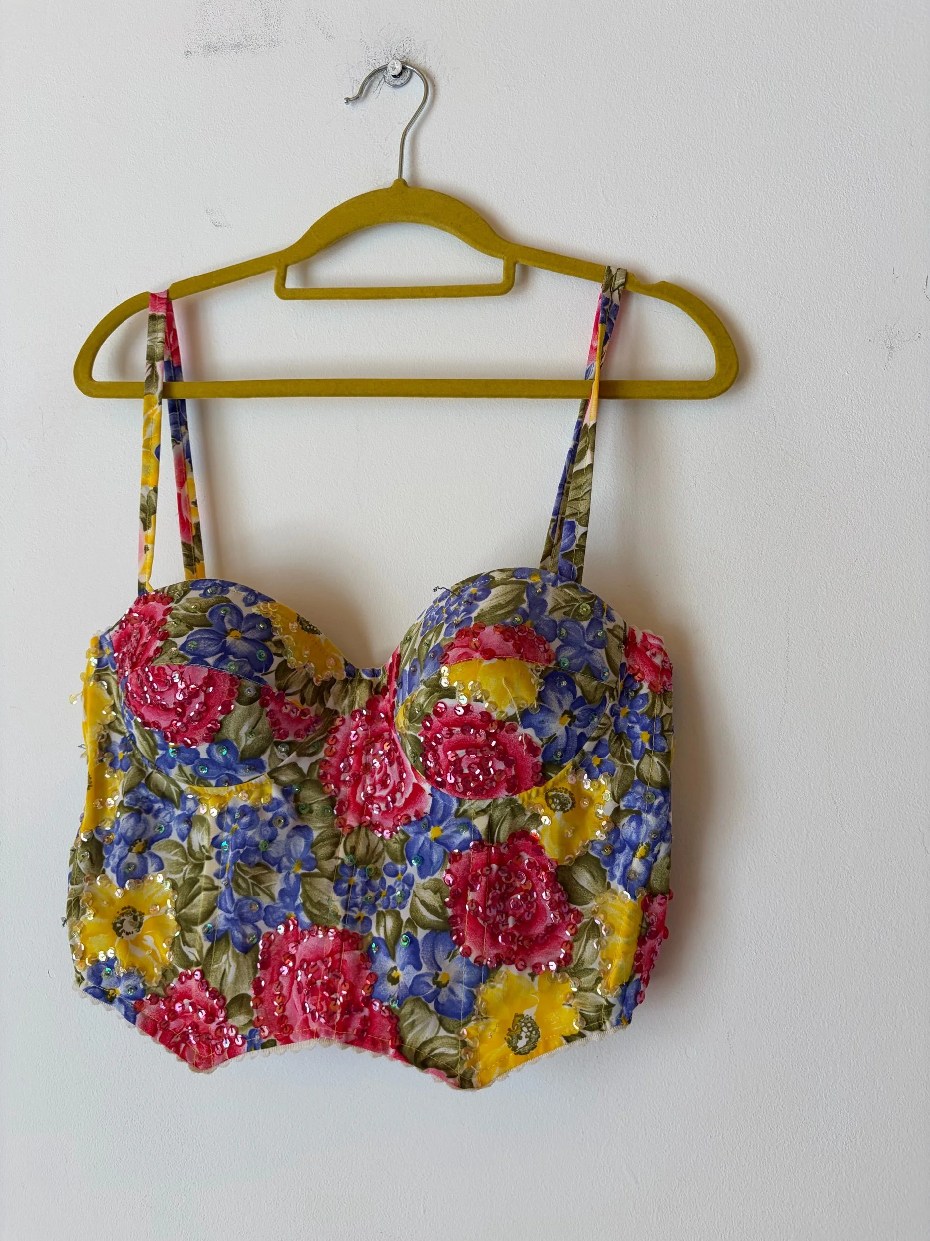 90s Bustier, made in France. Gorgeous colours and sequin detailing. Would be perfect for a festival!