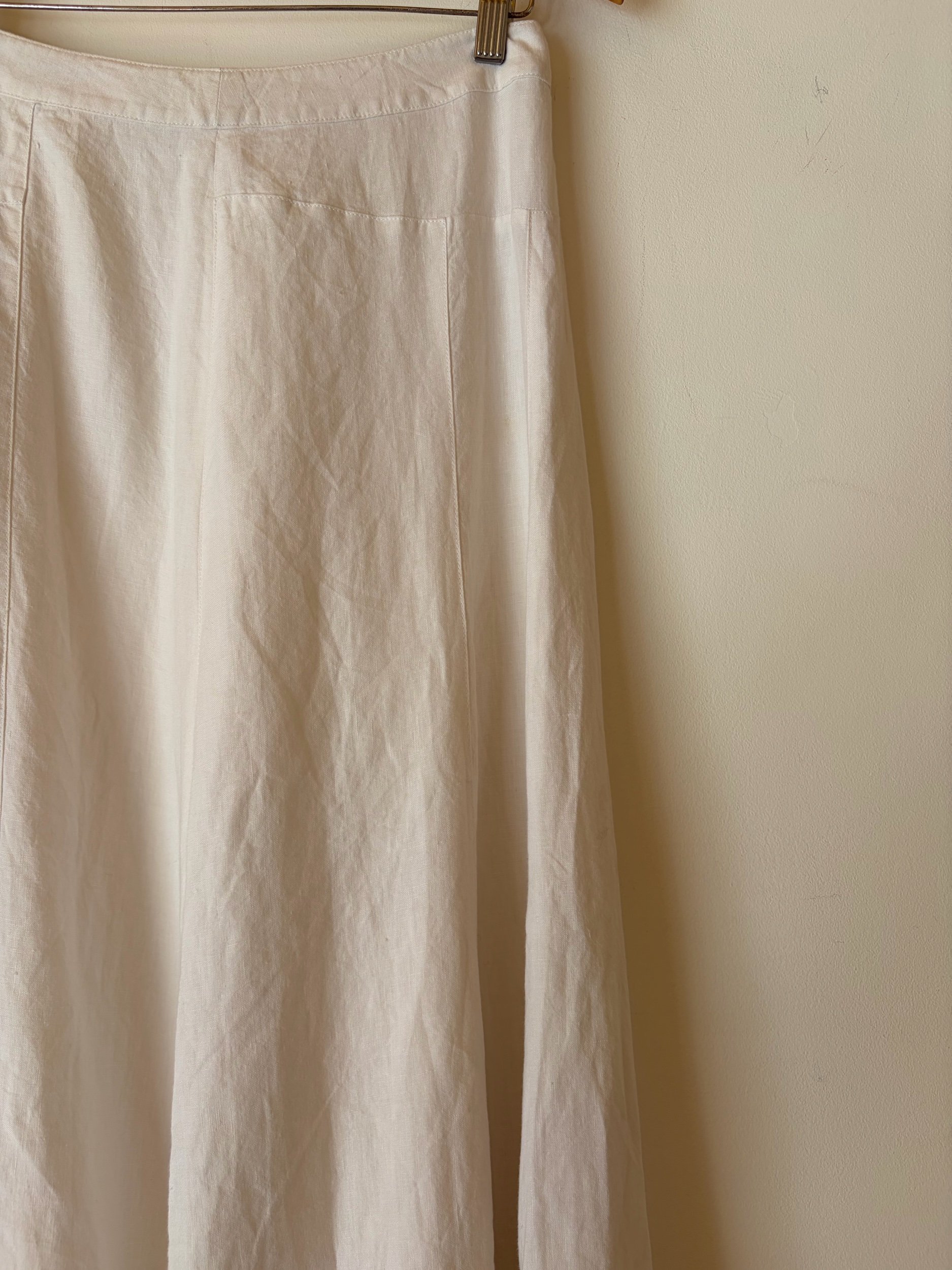 A white linen midaxi skirt is the ultimate summer essential. Working super hard in your wardrobe . Lovely quality material and in great condition!