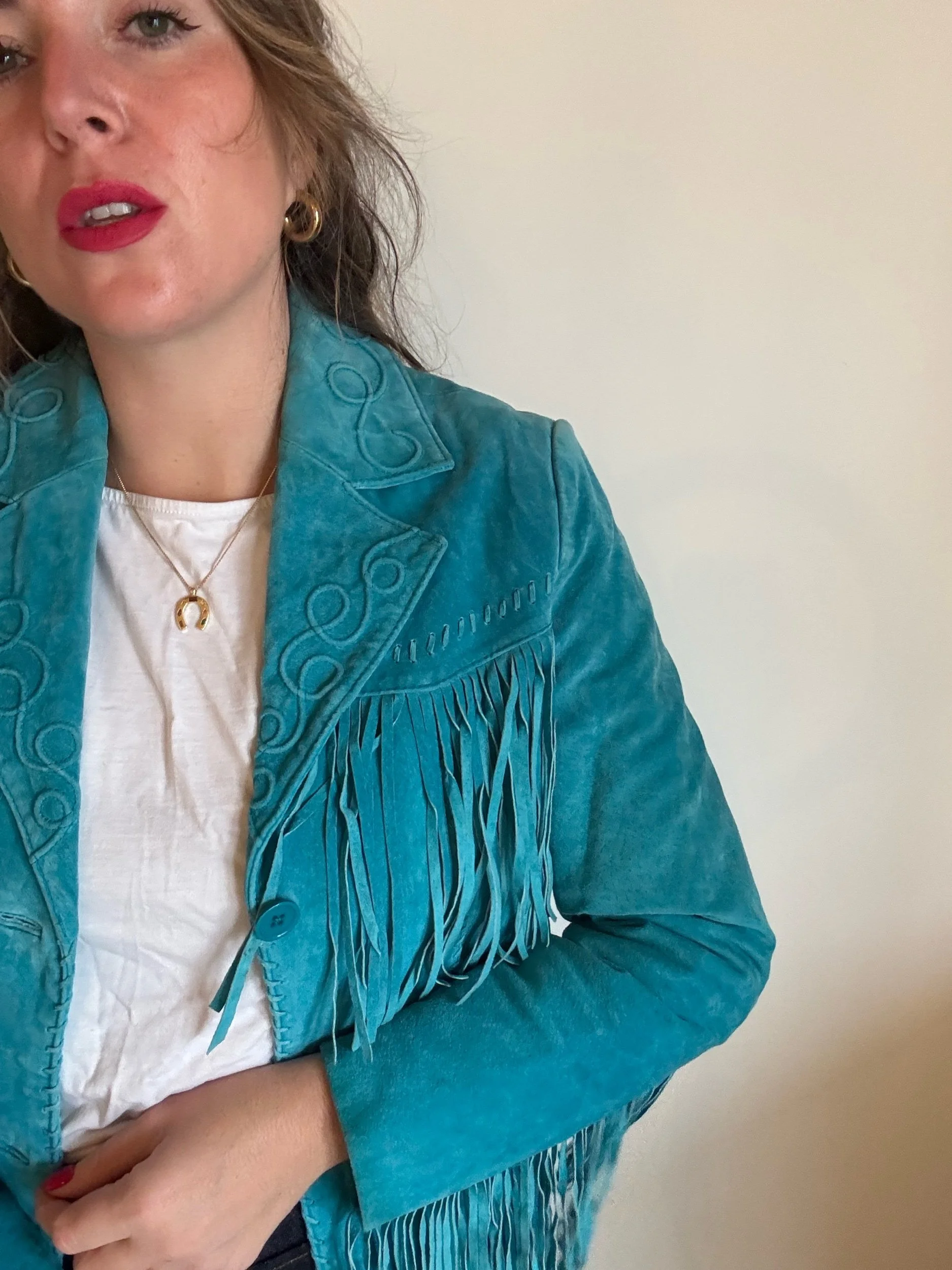 Stunning western jacket! Look at that colour :) the suede is in excellent condition and I just love all the plating detailing which gives it lots of texture.