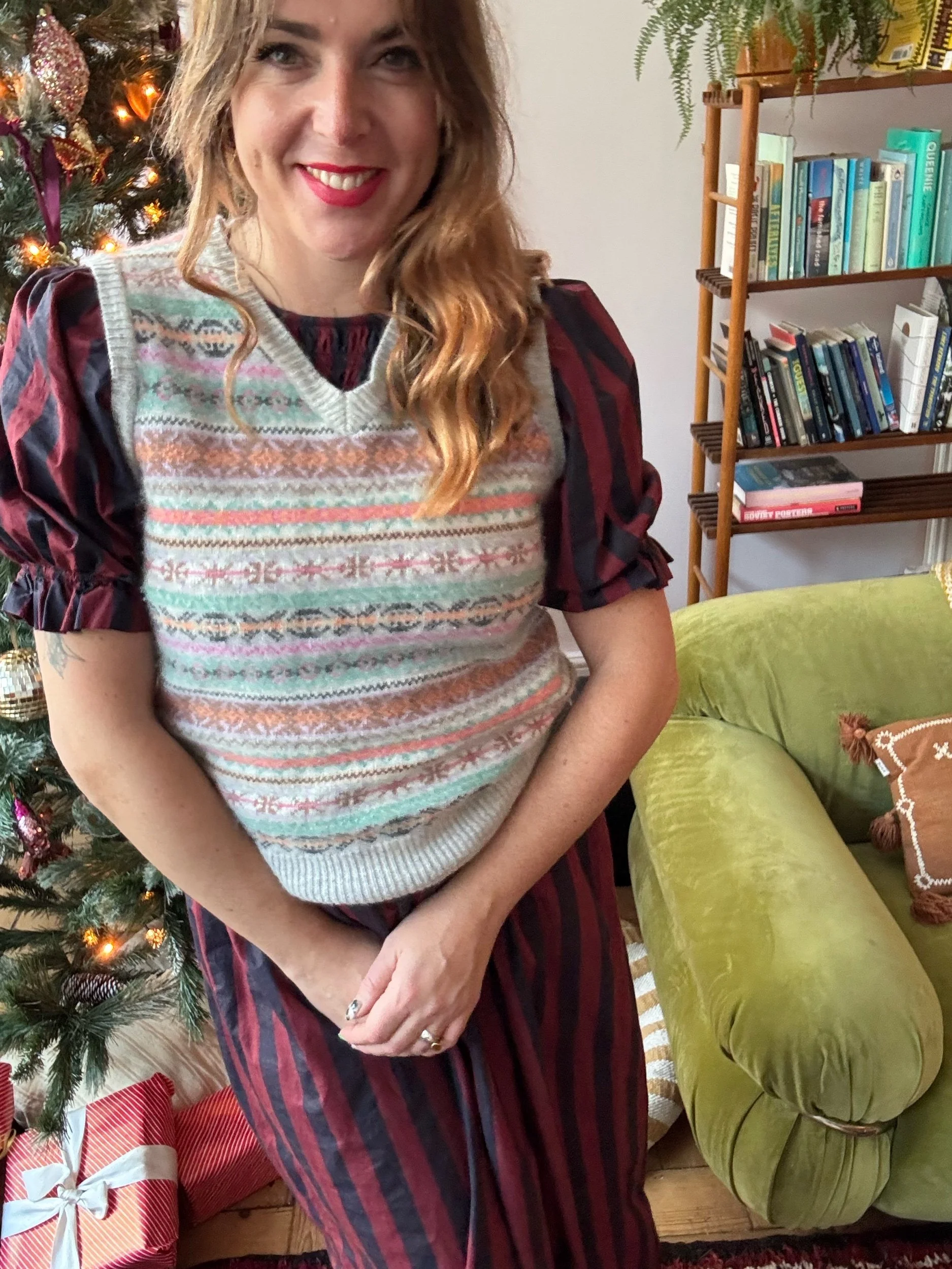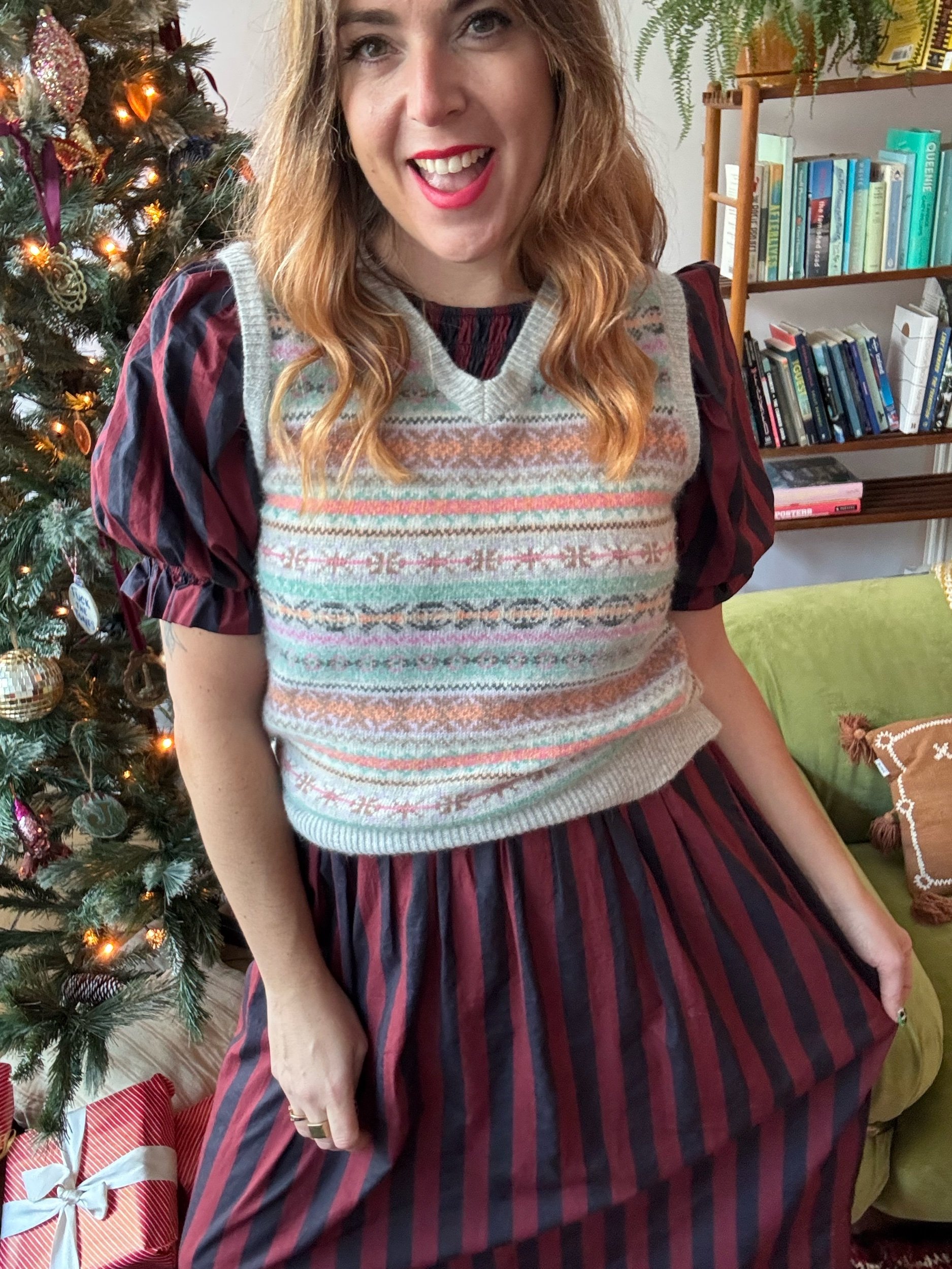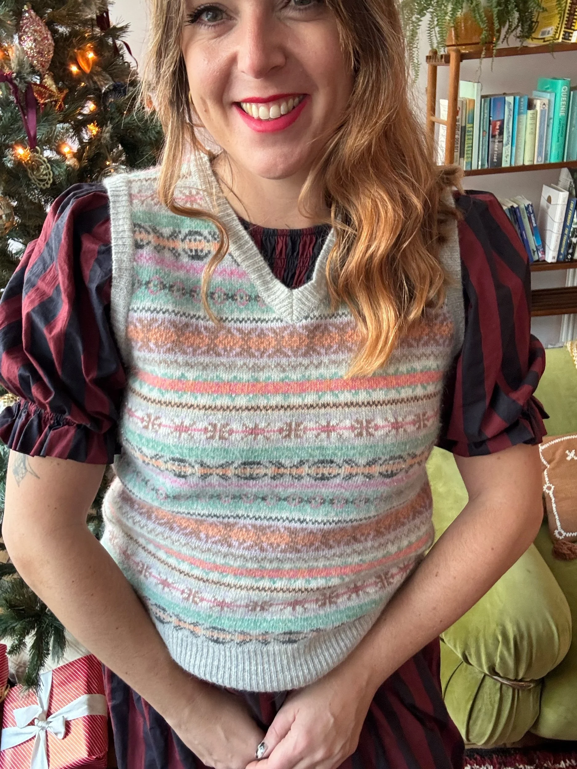 Such a soft and cosy tank. Adore the winter fairisyle print and misty pastels. By the brand Nightengales which is none for its quality.