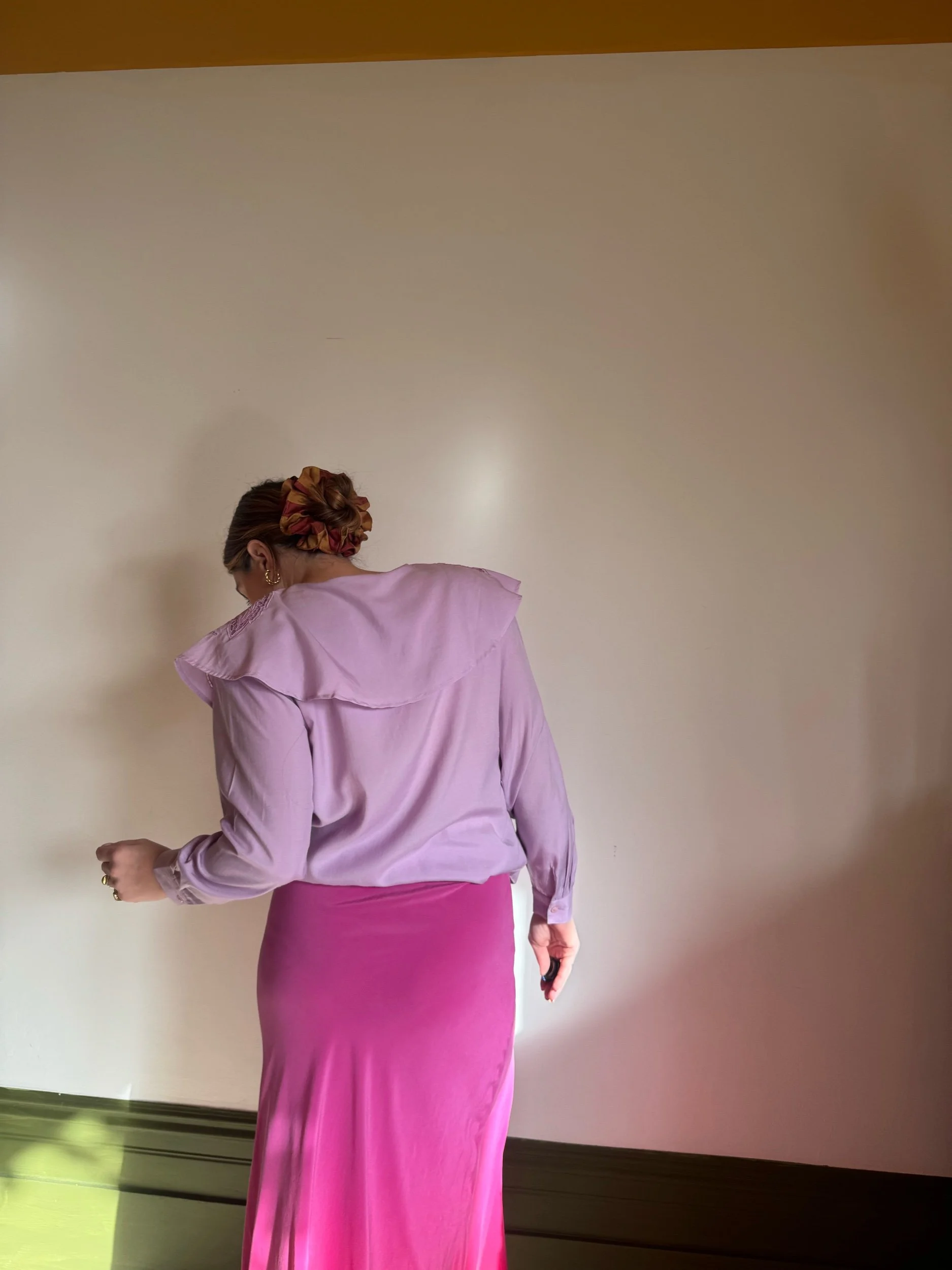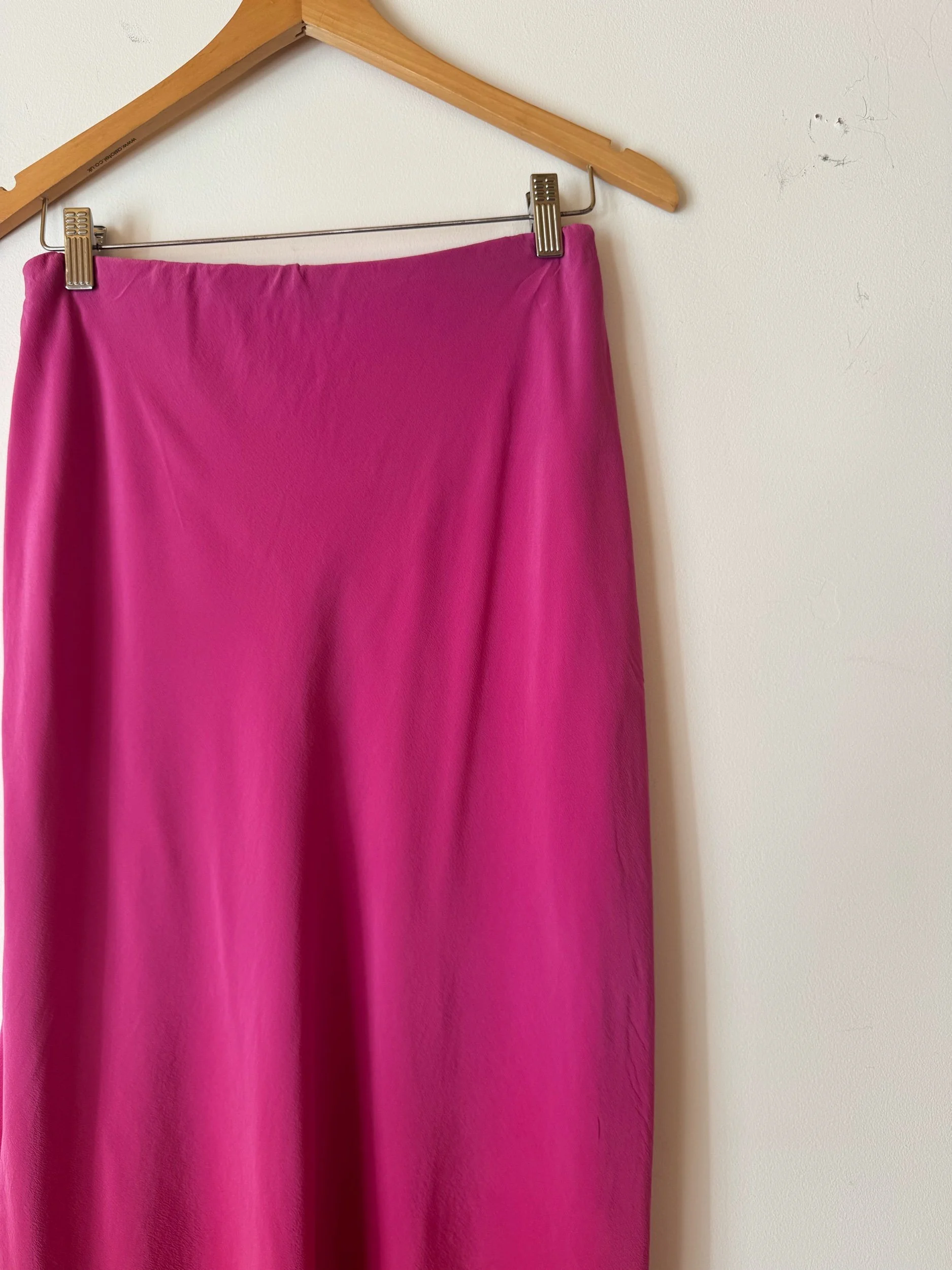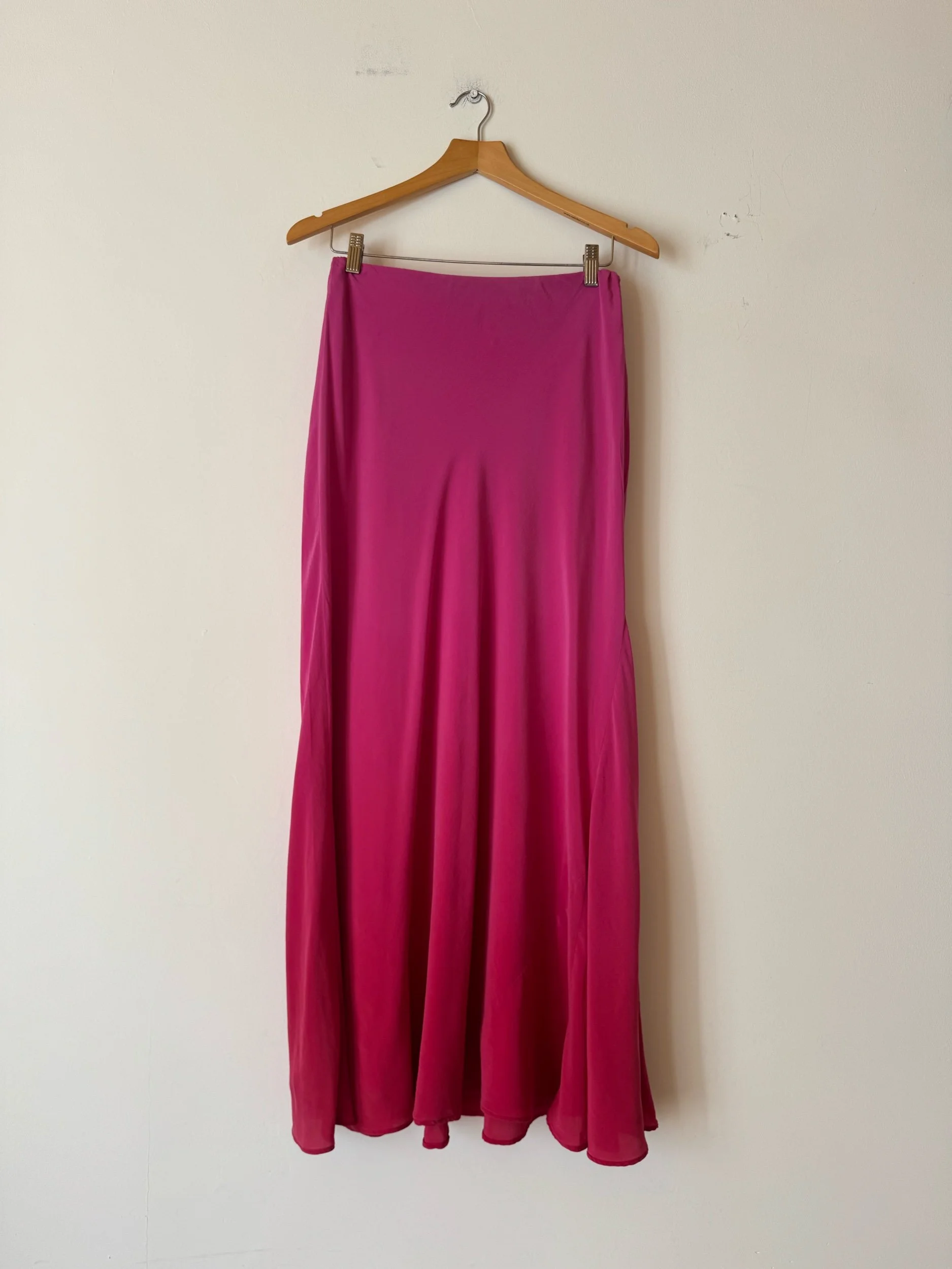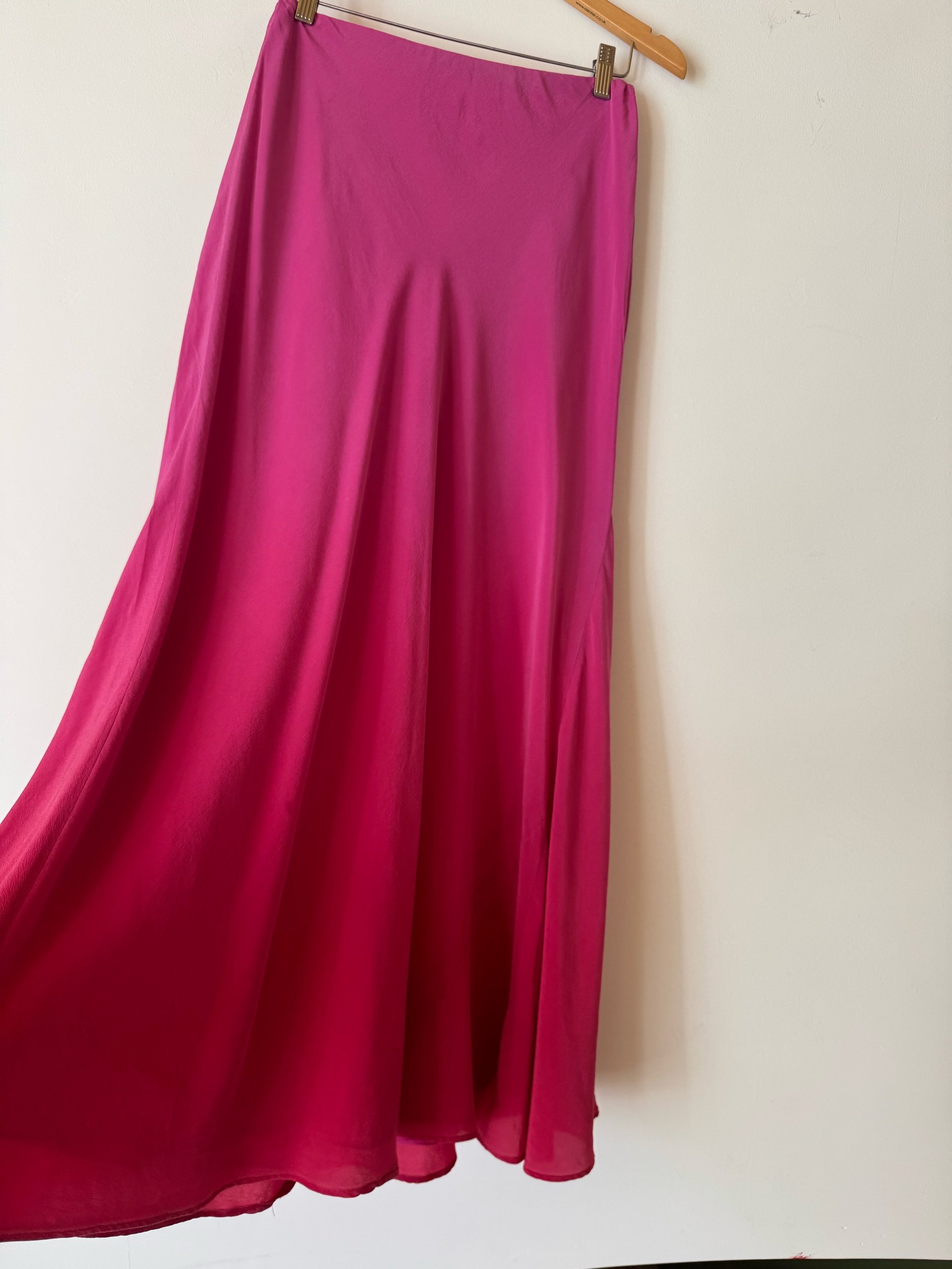 90s Monsoon maxi skirt, in a gorgeous graduated shade of pink. The silk is sublime and it sculpts the body beautifully.