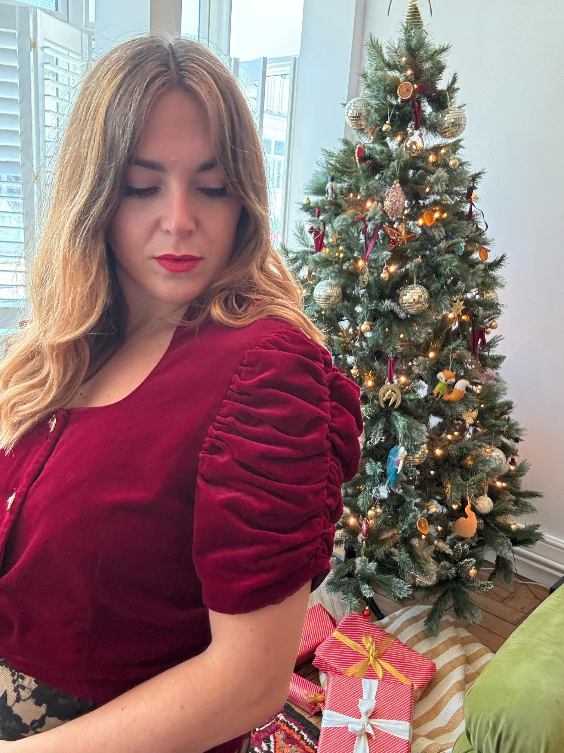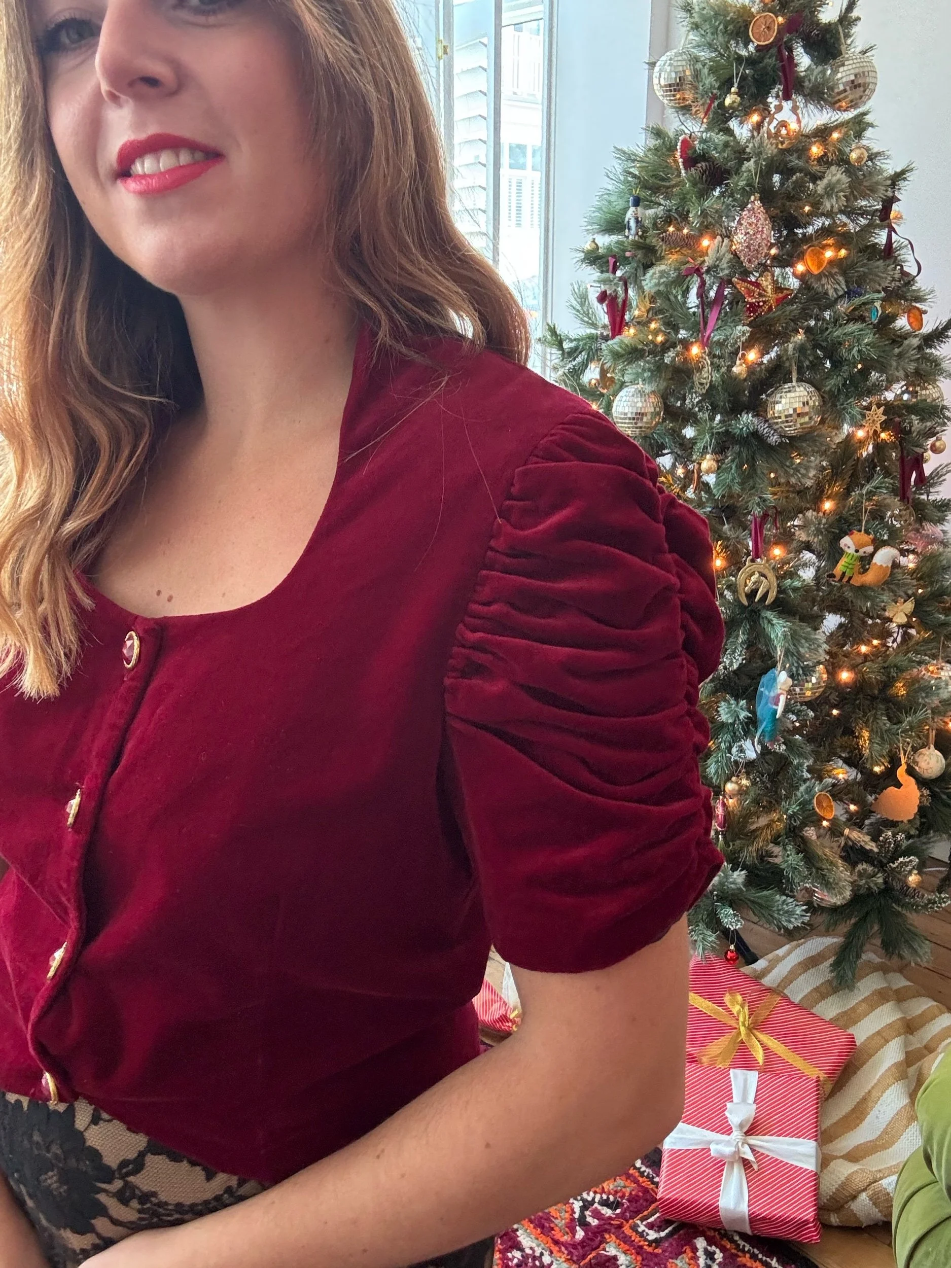 Adore this blouse so so much- it’s giving 90s Laura Ashley with a bit more drama. The sleeves are puffed and rusched. Gold button detailing. Really lovely quality!