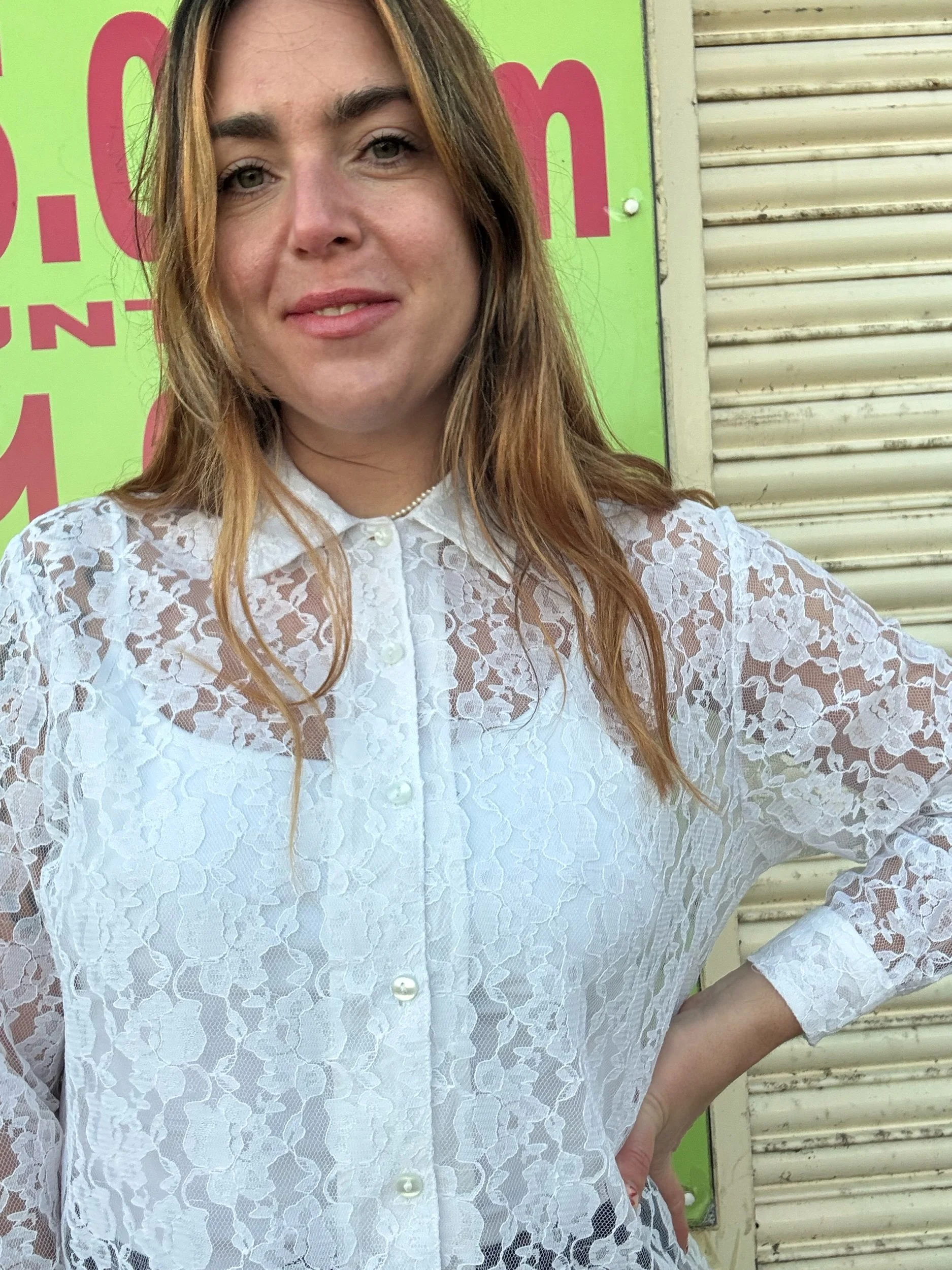 90s lace blouse, a great layering piece for spring. Looks fab paired with blue denim and styled with a bralette underneath!