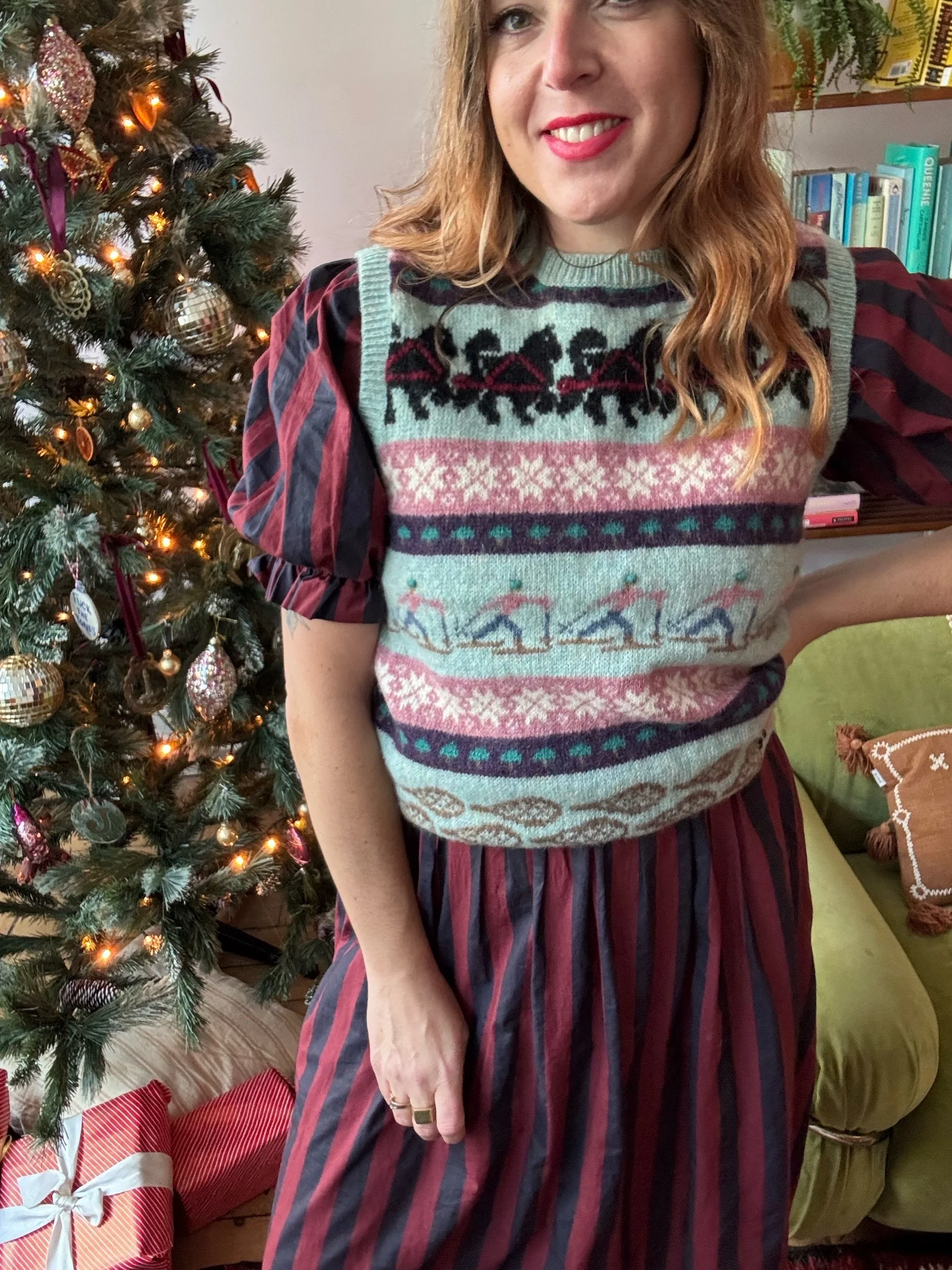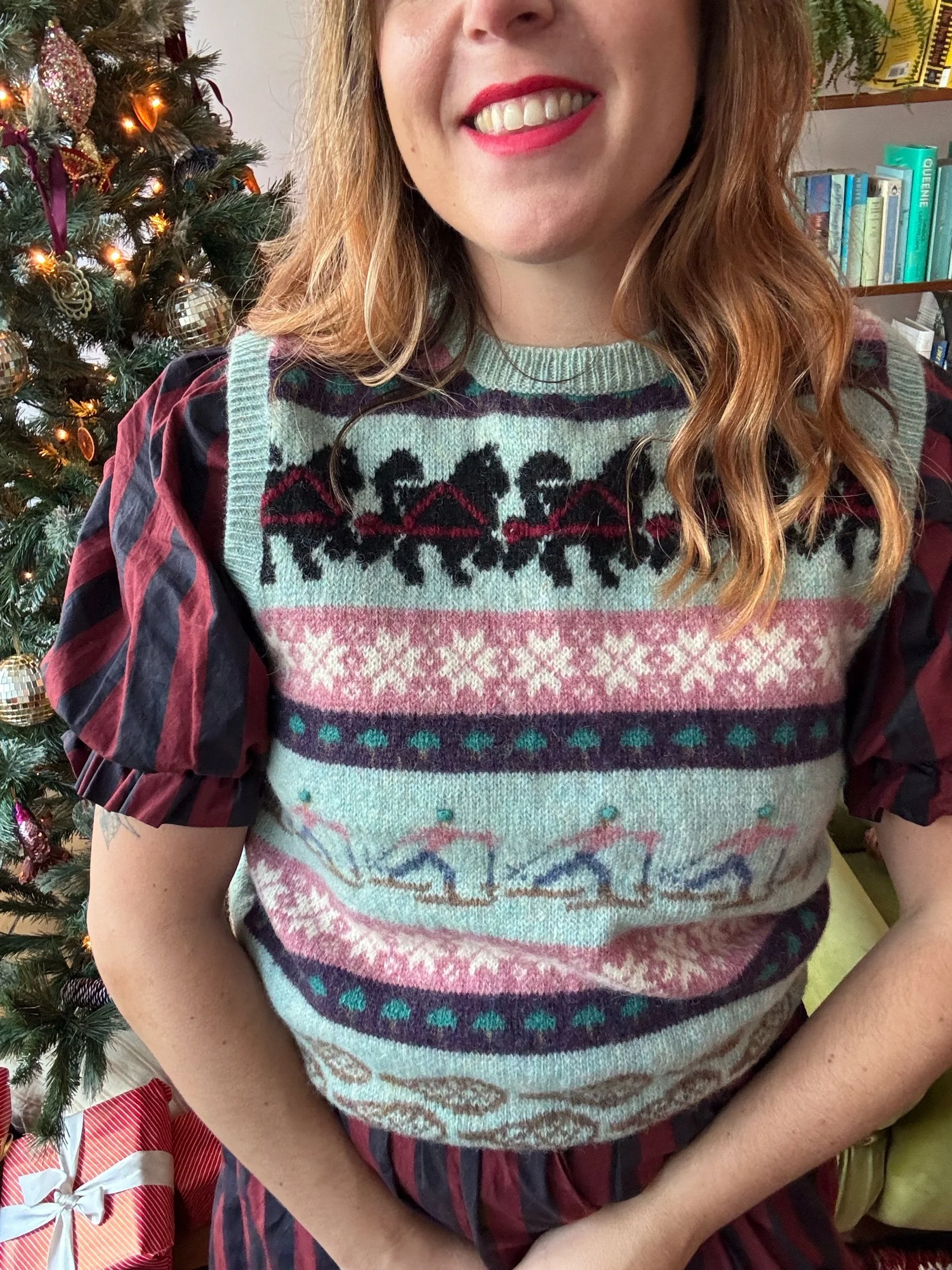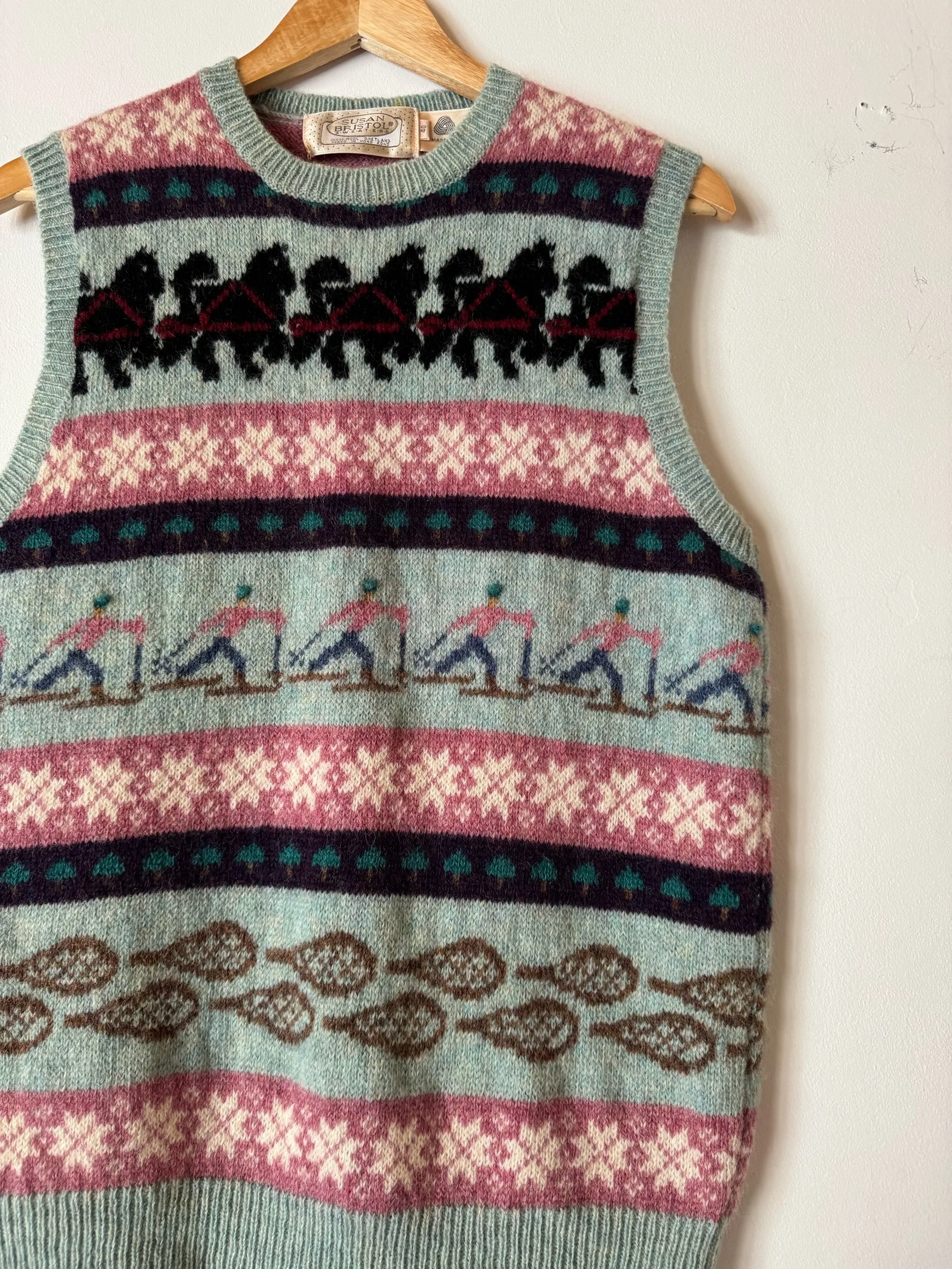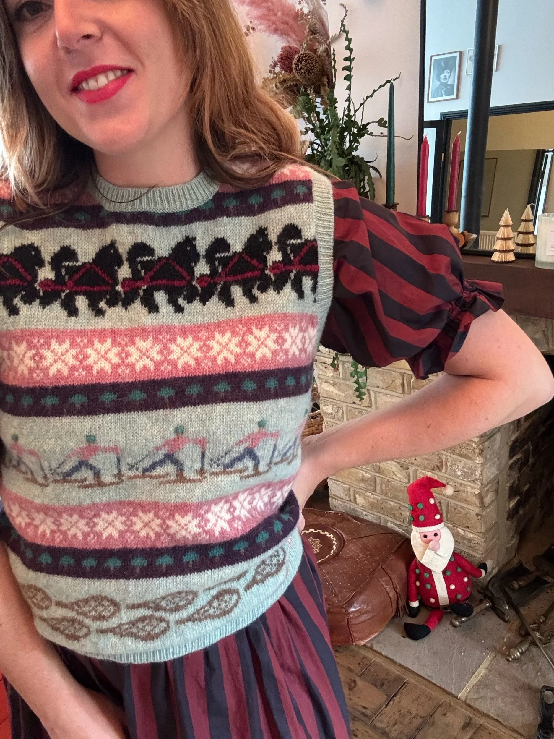 I love a Susan Bristol knit and this tank is an example of why. Playful, amazing quality and timeless. This tank has cute little ski people, horses and various other winter motifs!