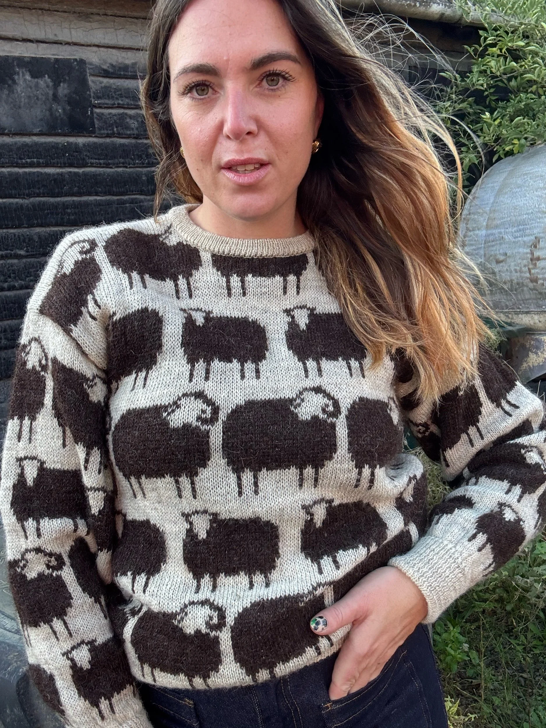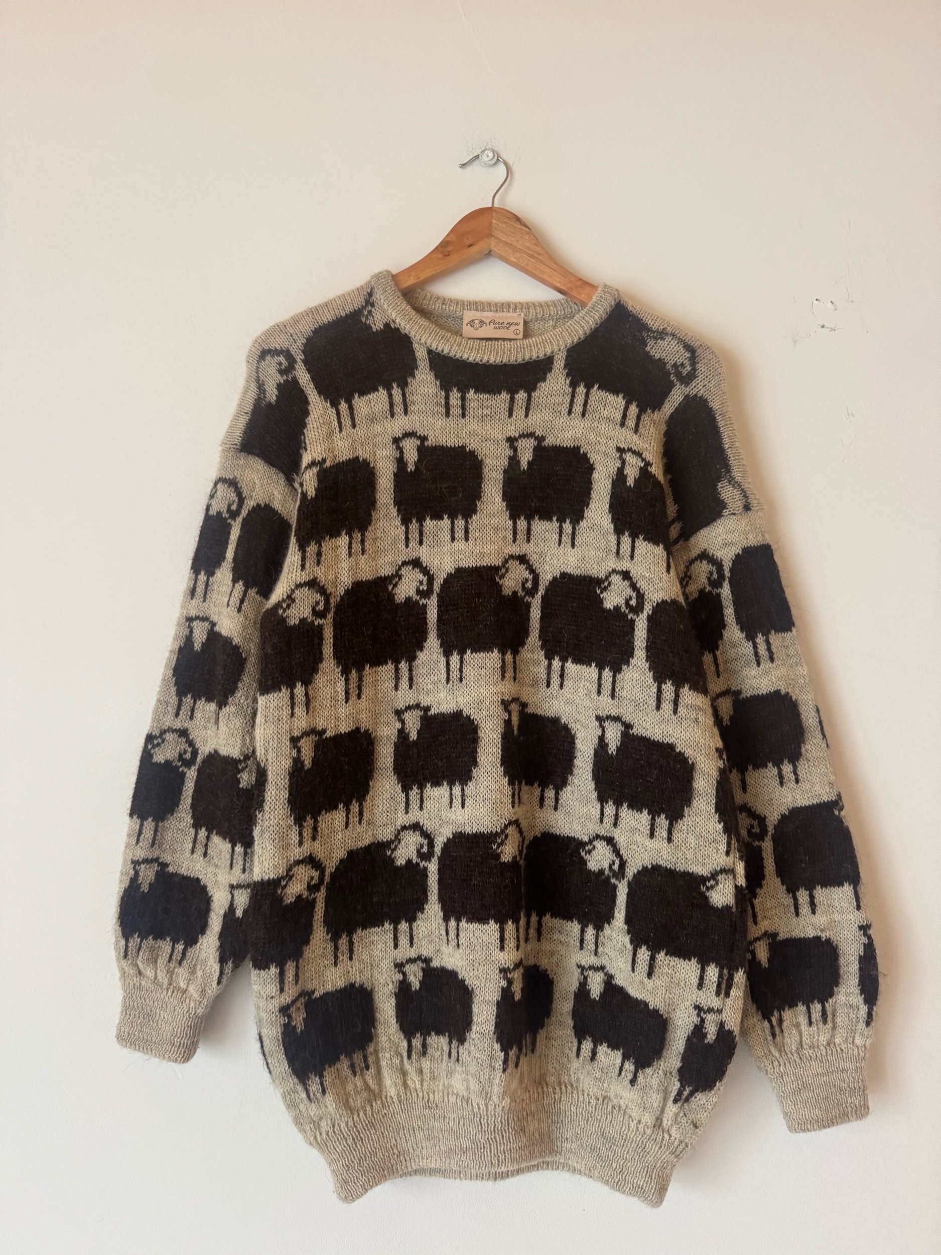 Gorgeous 80s sheep jumper, I’ve seen lots of sheep jumpers in my time but this one seems to have slightly larger sheep than usual which I really like. Brown an grey palette.