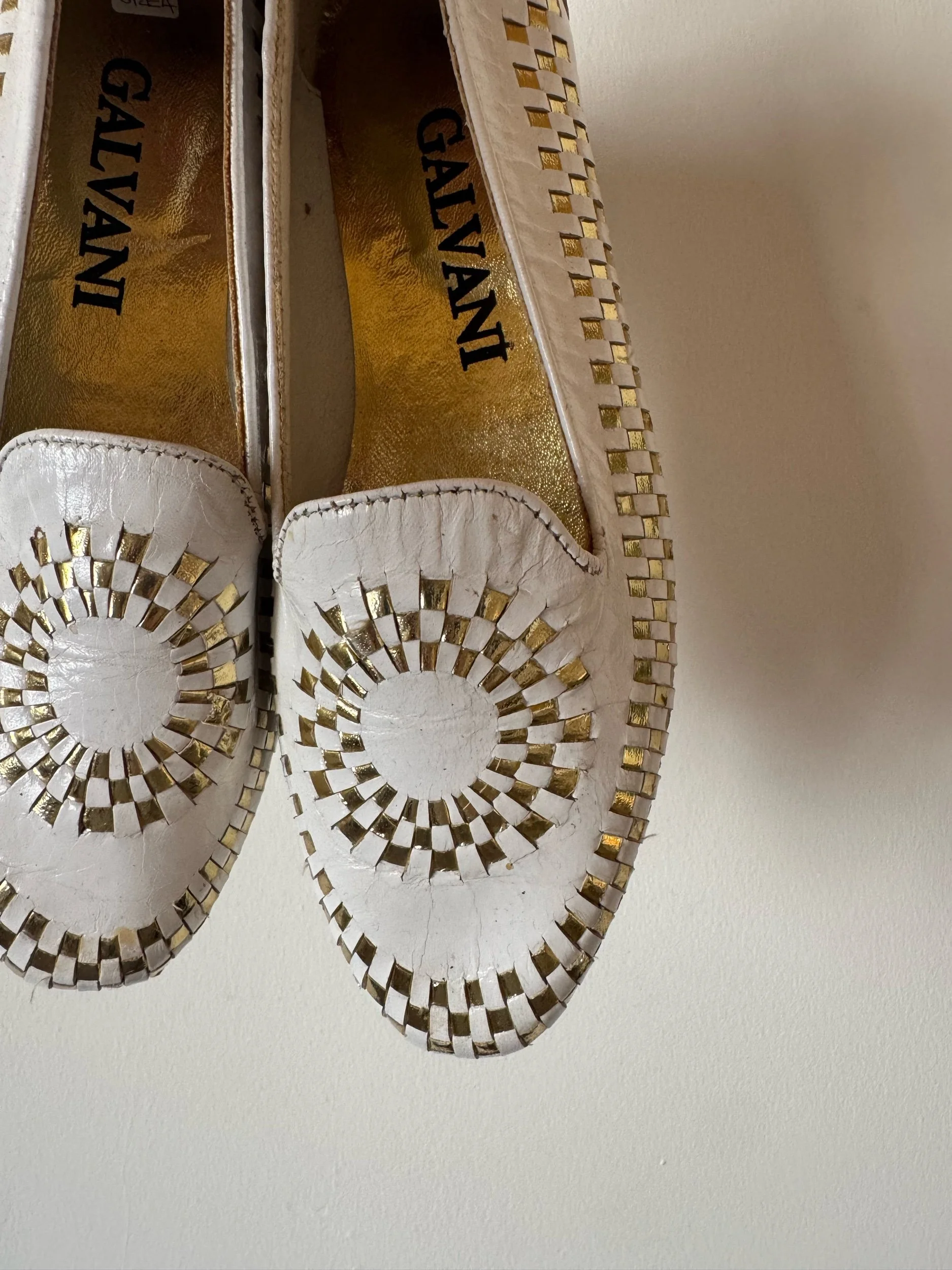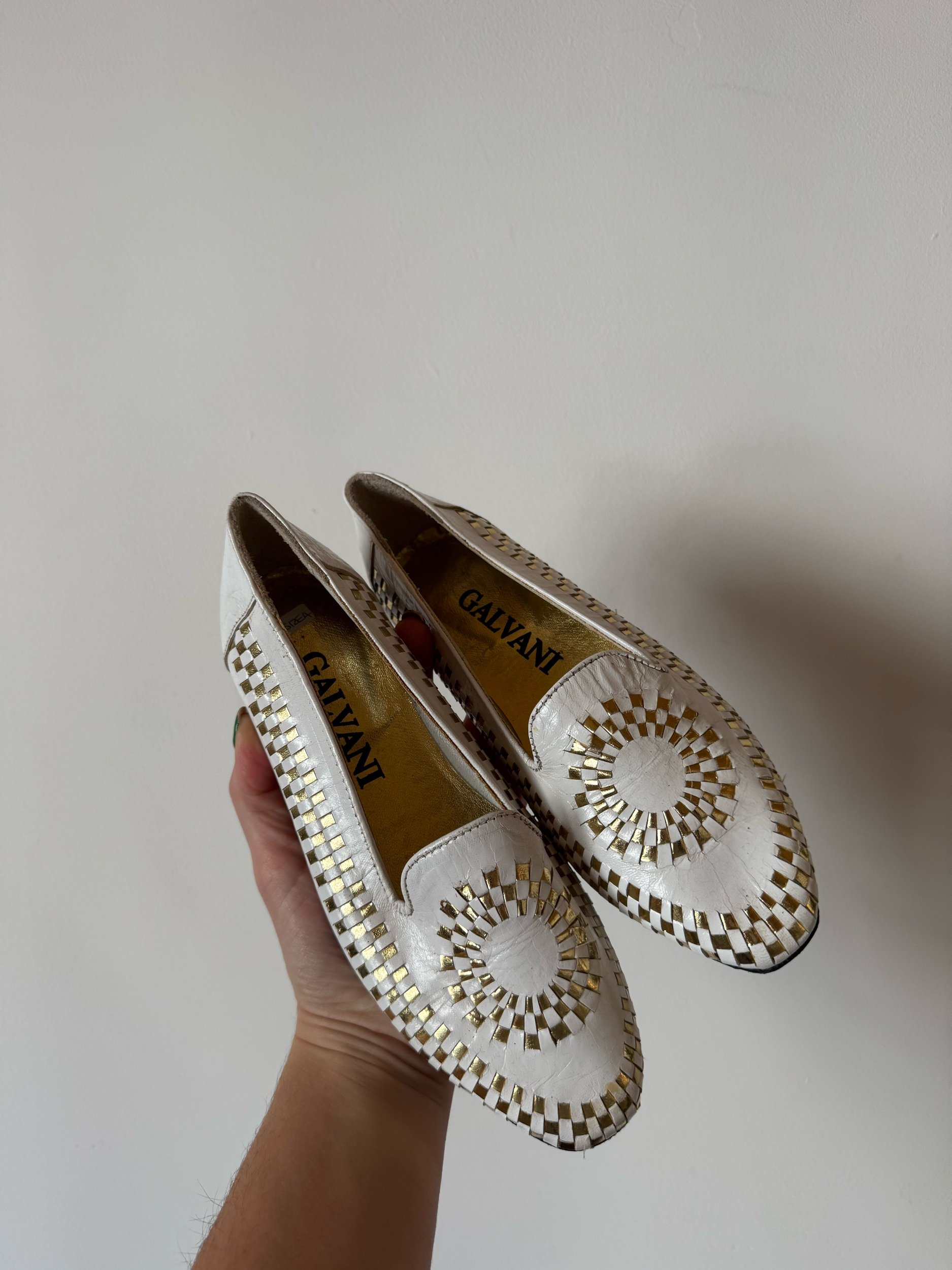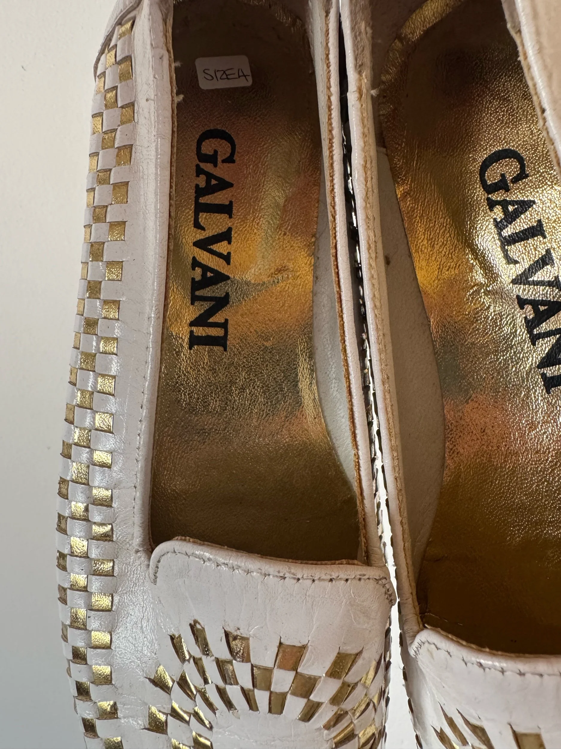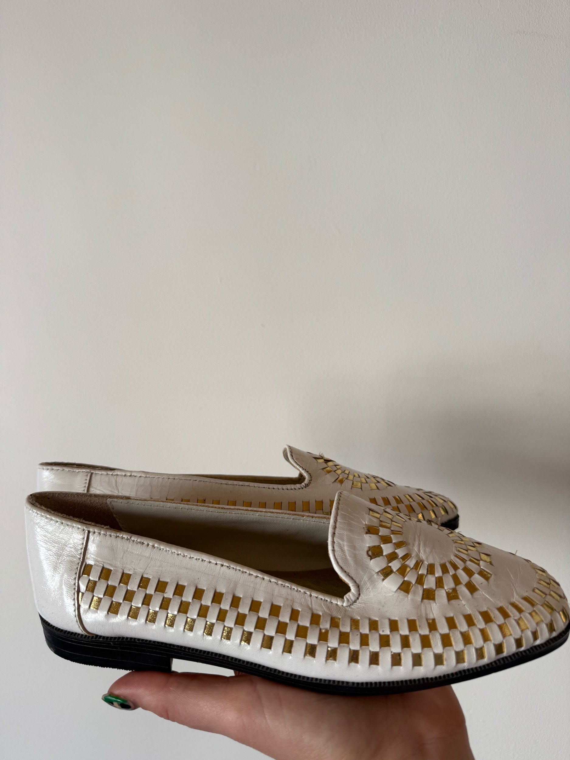 White leather with gorgeous gold plaiting detailing