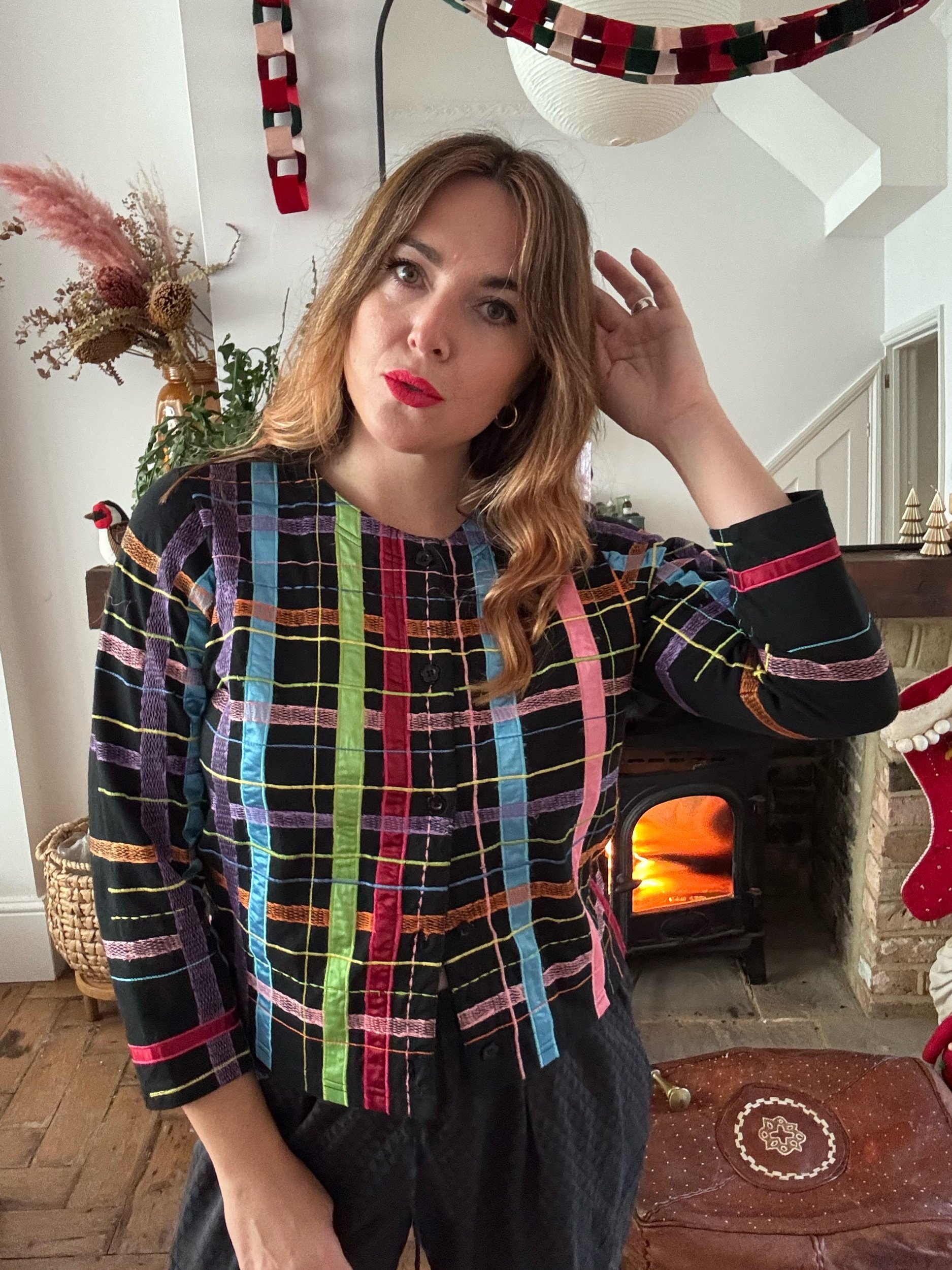 I couldn’t be more obsessed with this jacket! The ribbon detailing is just so perfect for this time of year and all of those delicious colours 💜 very rare brand “m Micheal Simon” And made with exceptional quality. 90s piece