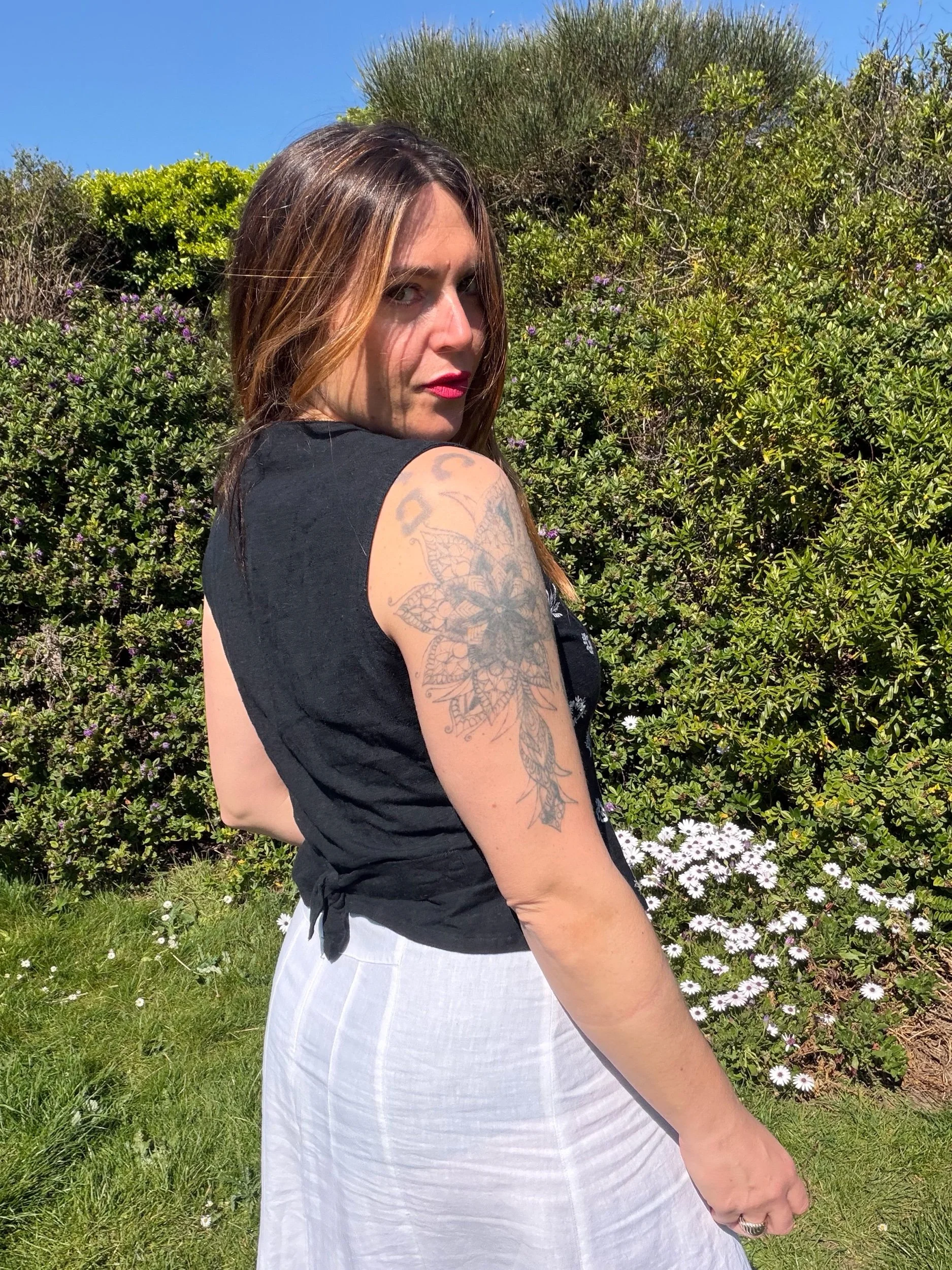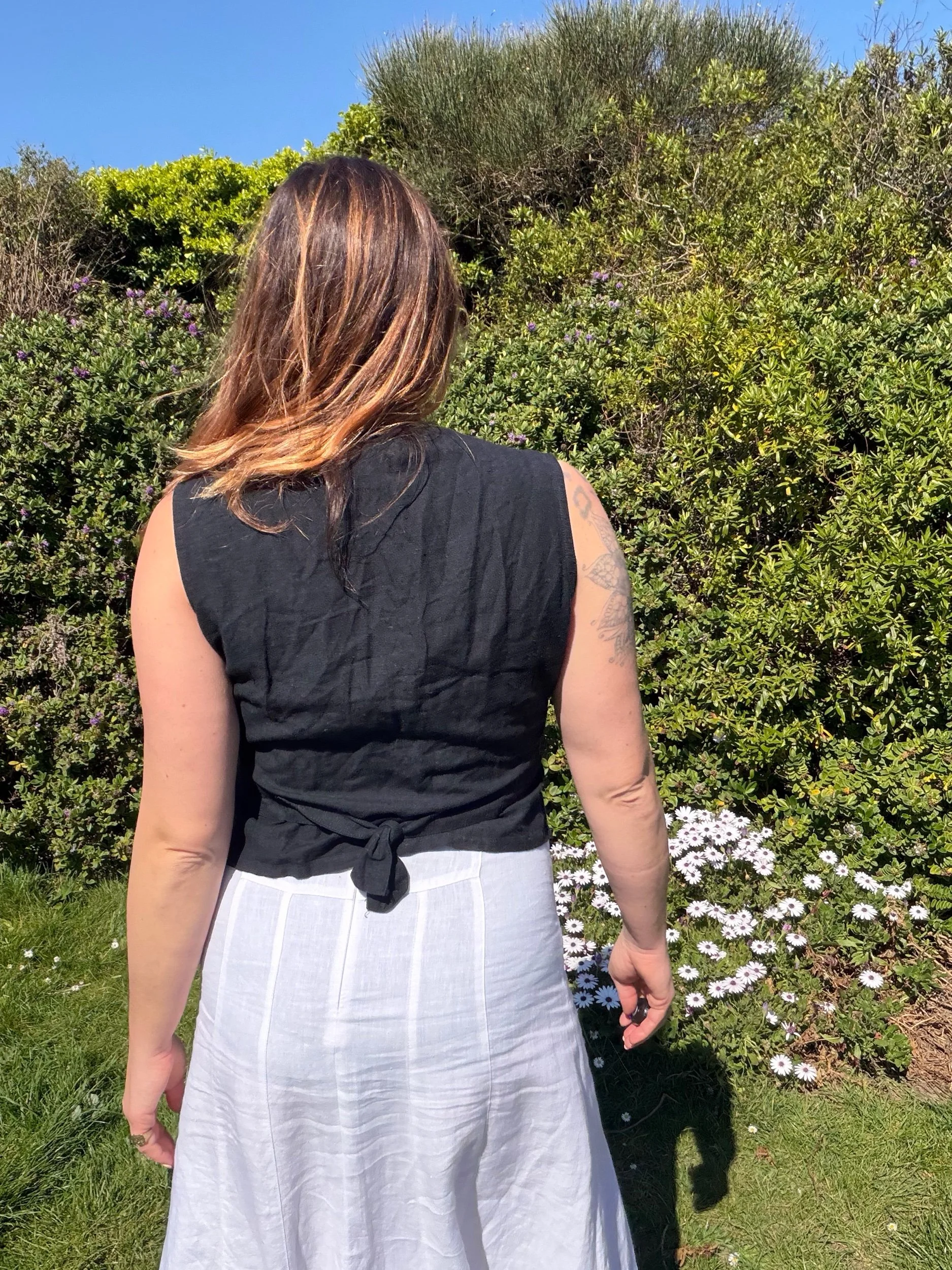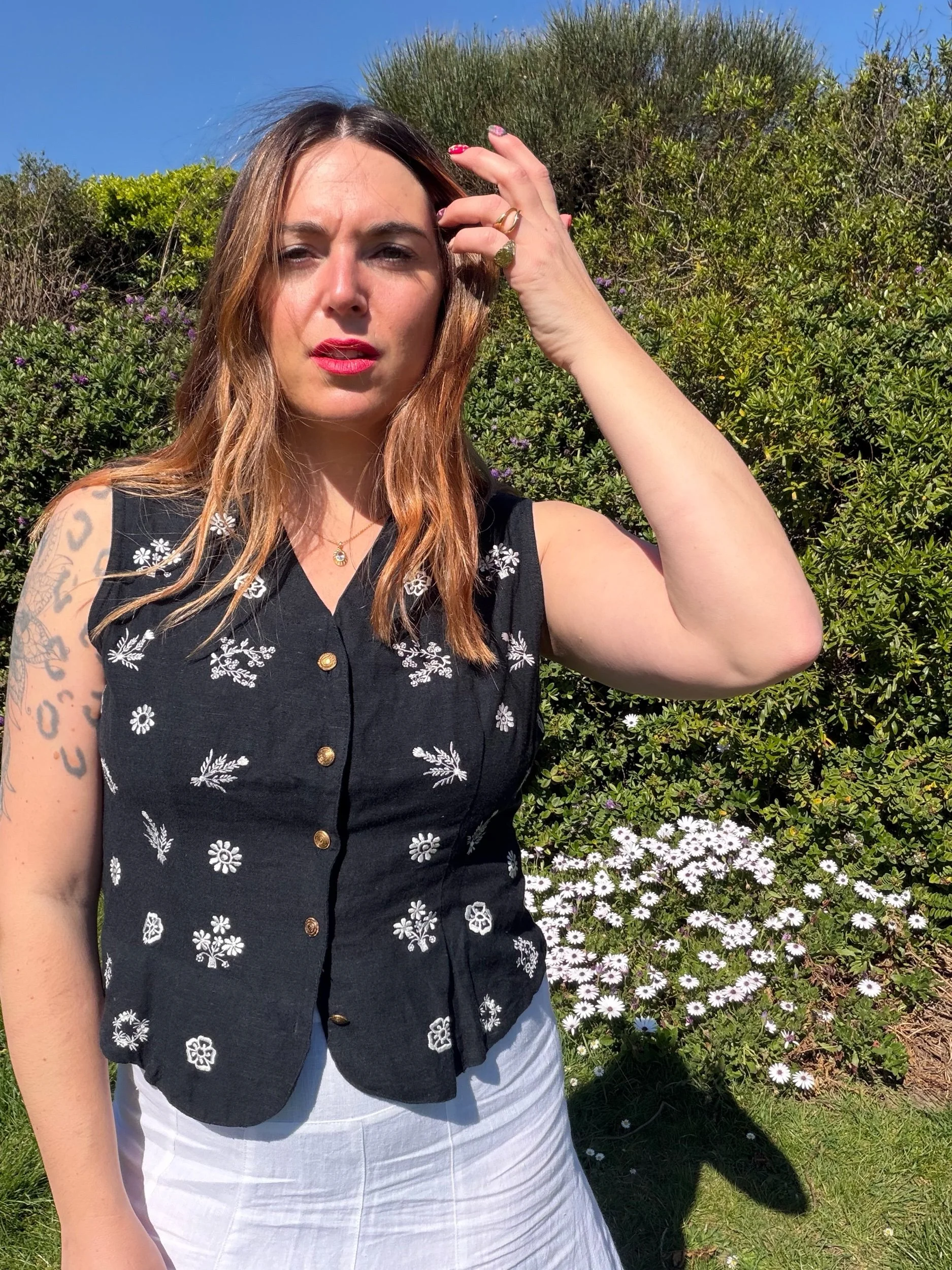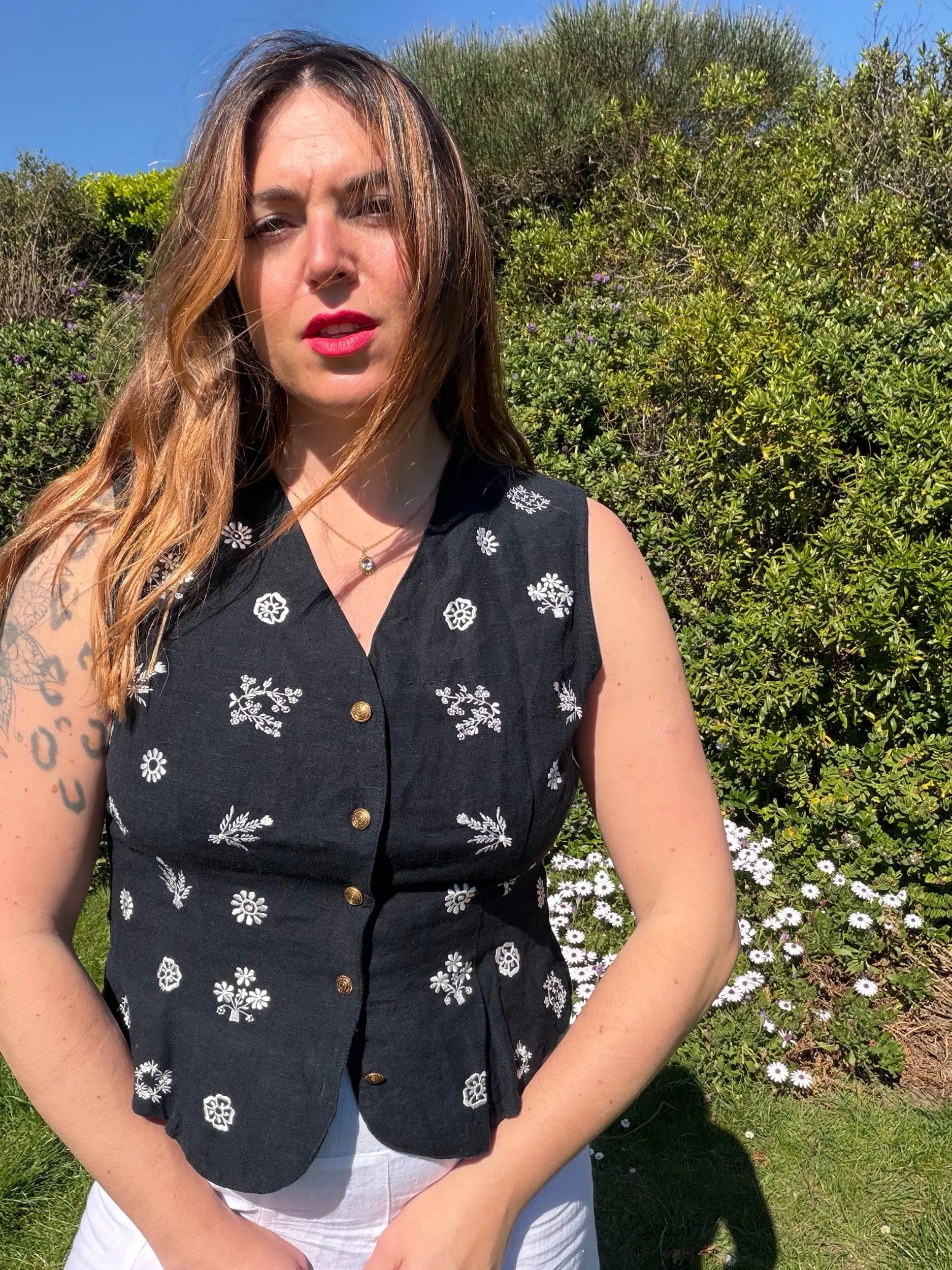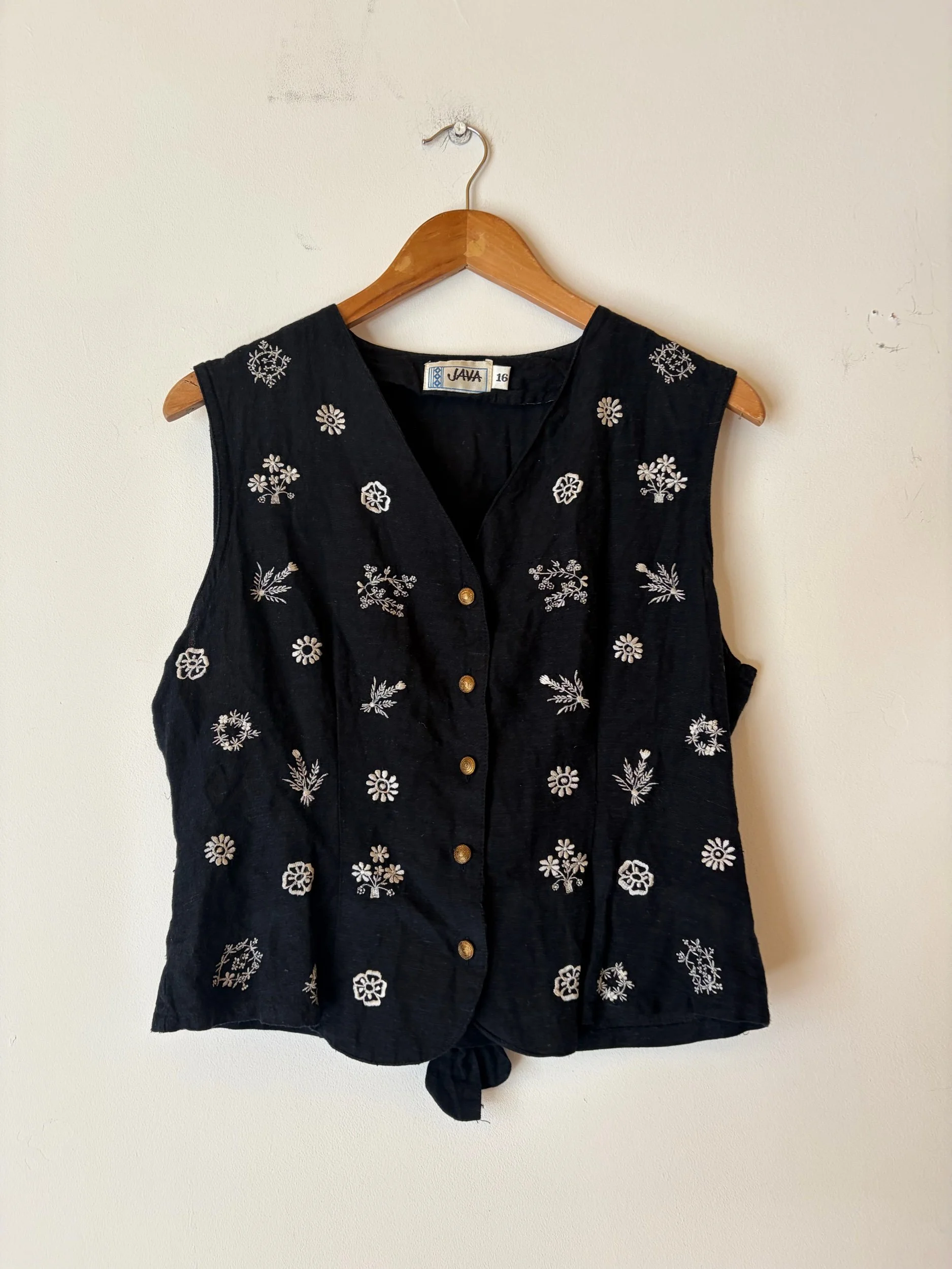 Super cute 90s waistcoat. Perfect for the summer months and very easy to style up. Dinky embroidered florals on the front panels.
