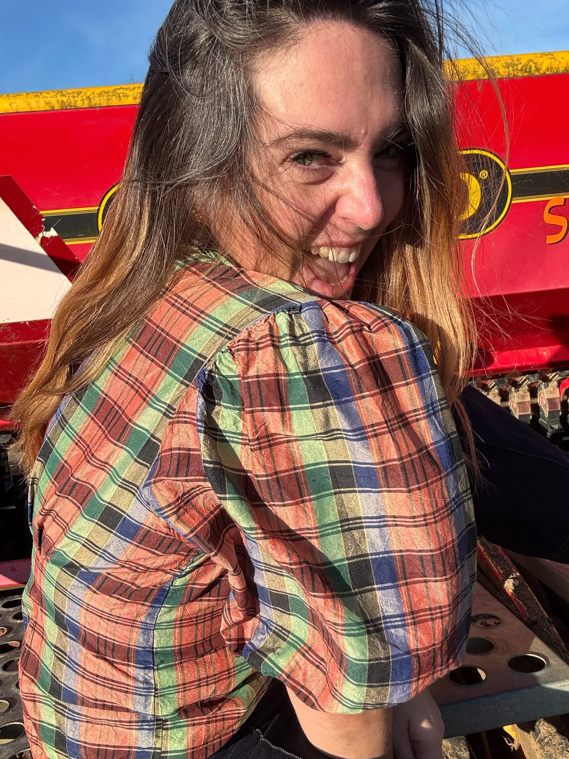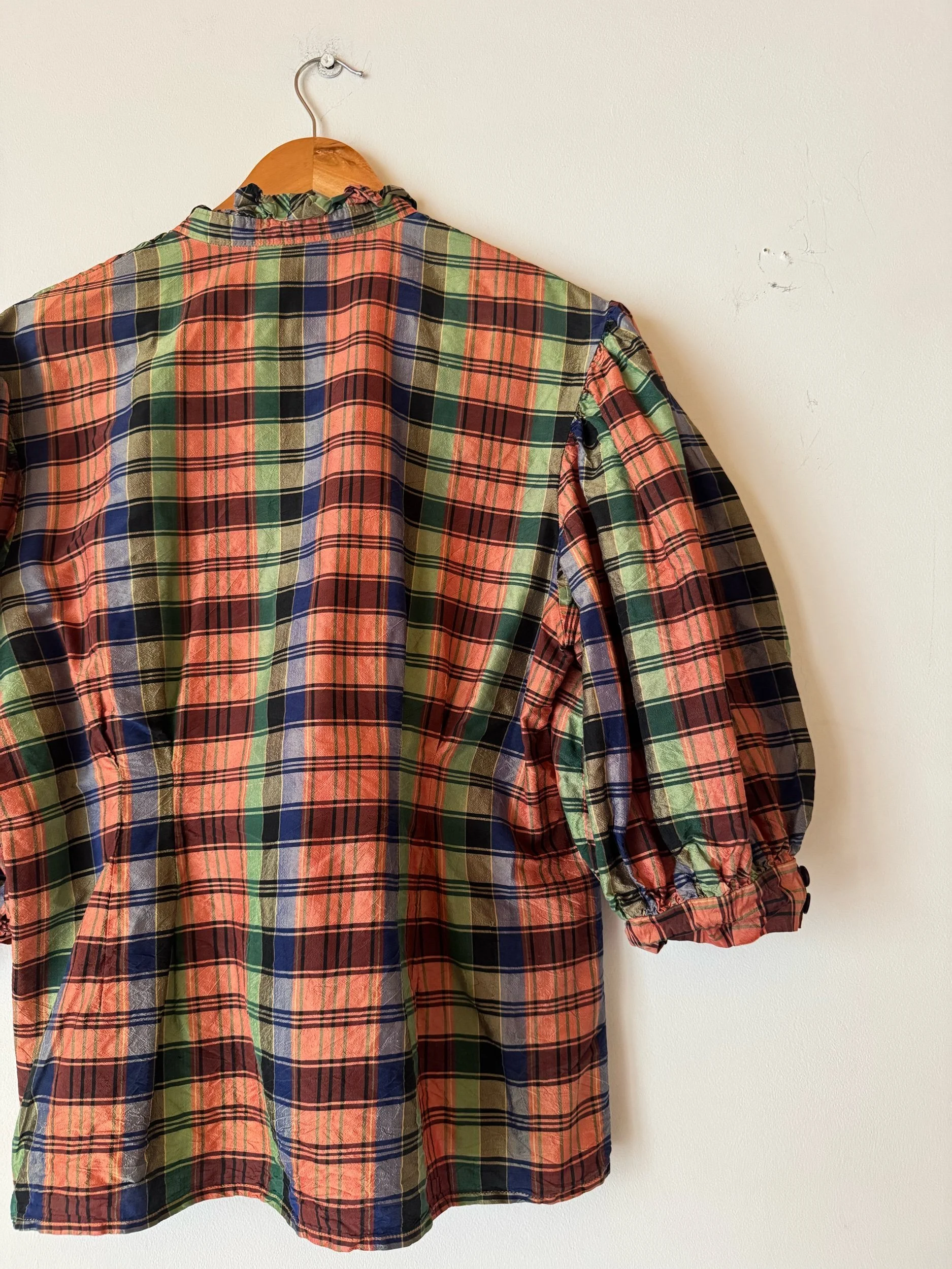 Utterly gorgeous silk blouse with delicious puffy sleeves l. I love the orange green tartan and the shape of the nipped in waist is oh so flattering ! Appears handmade, definitely silk though!