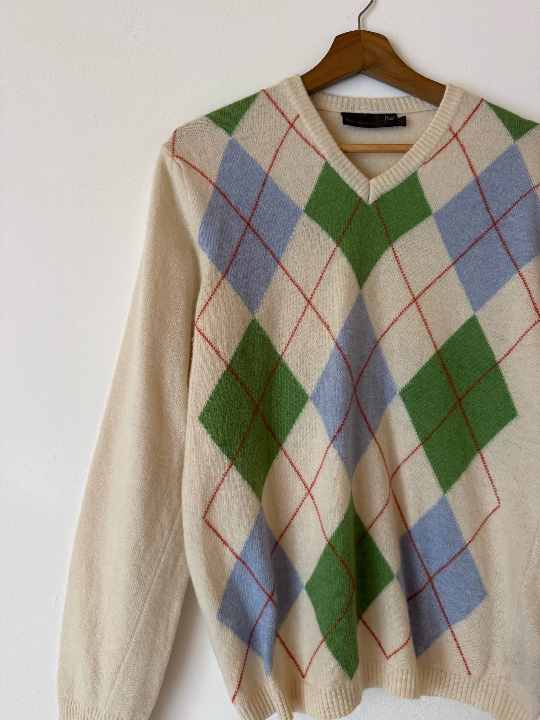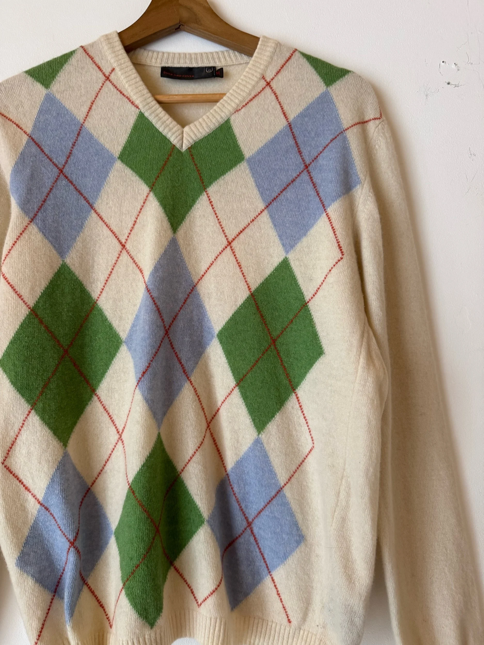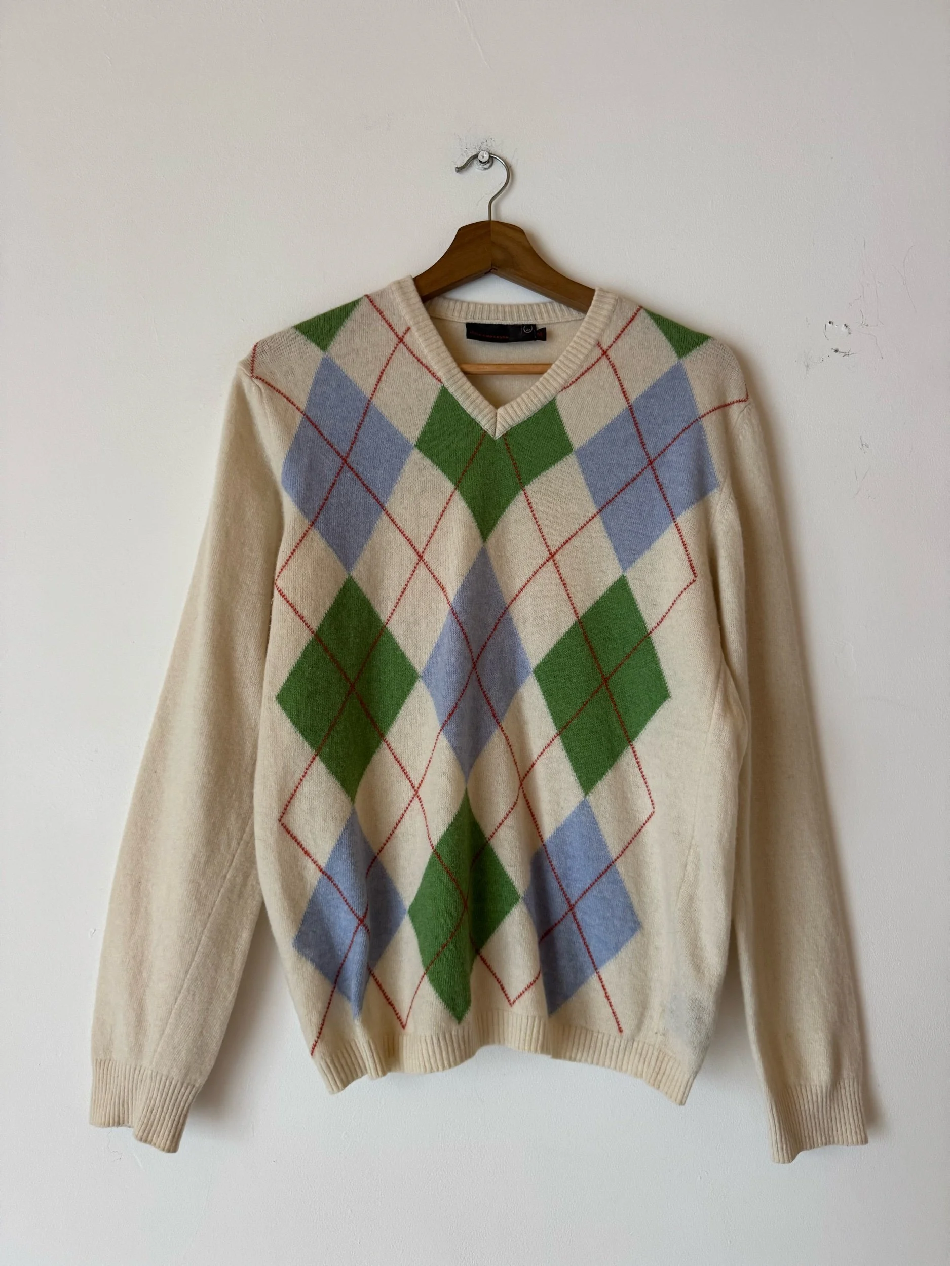 Love the colours on the argyle jumper, it’s super soft and cosy to wear too! Slight V neck and looks fab styled over a collared blouse!