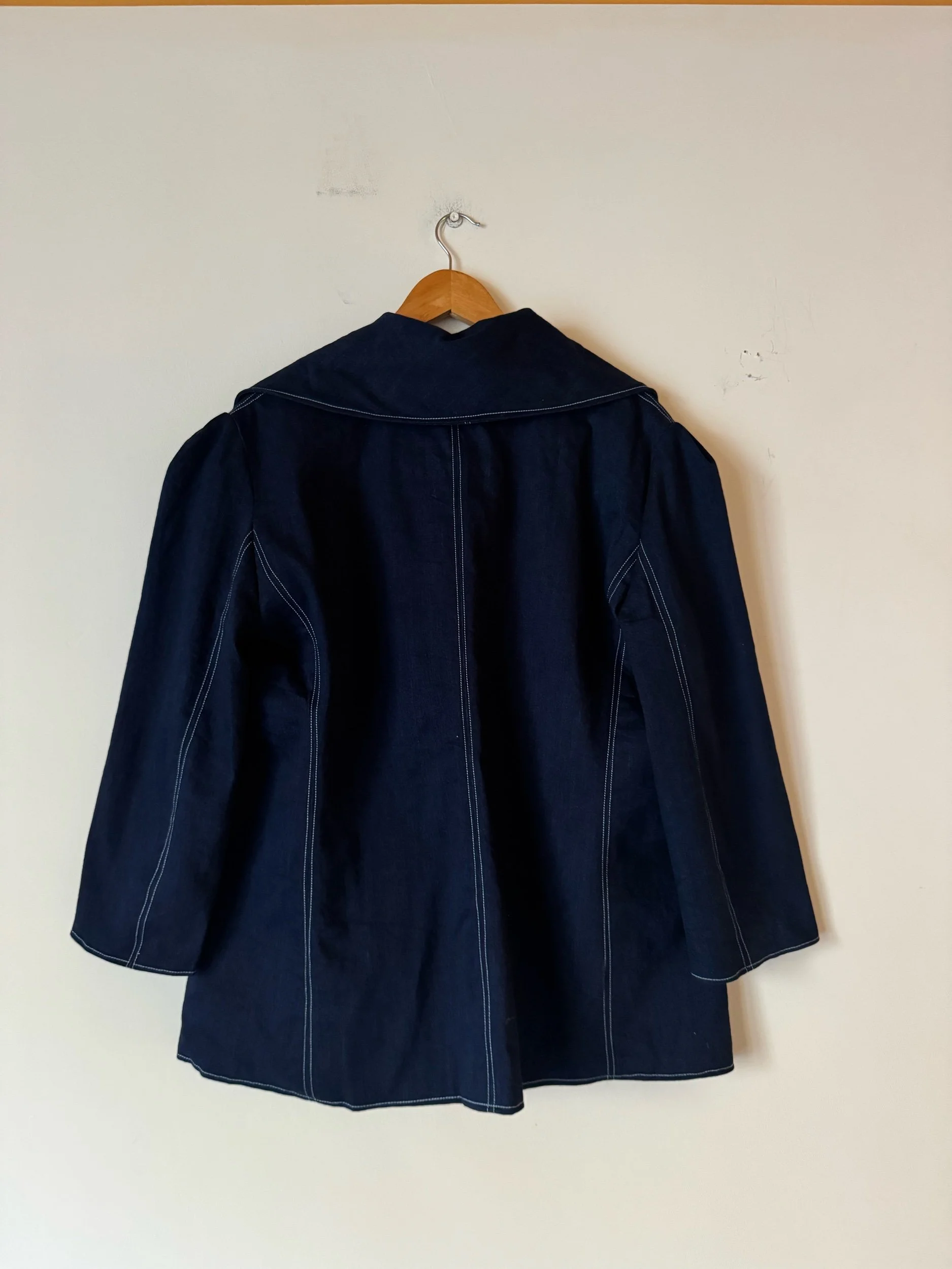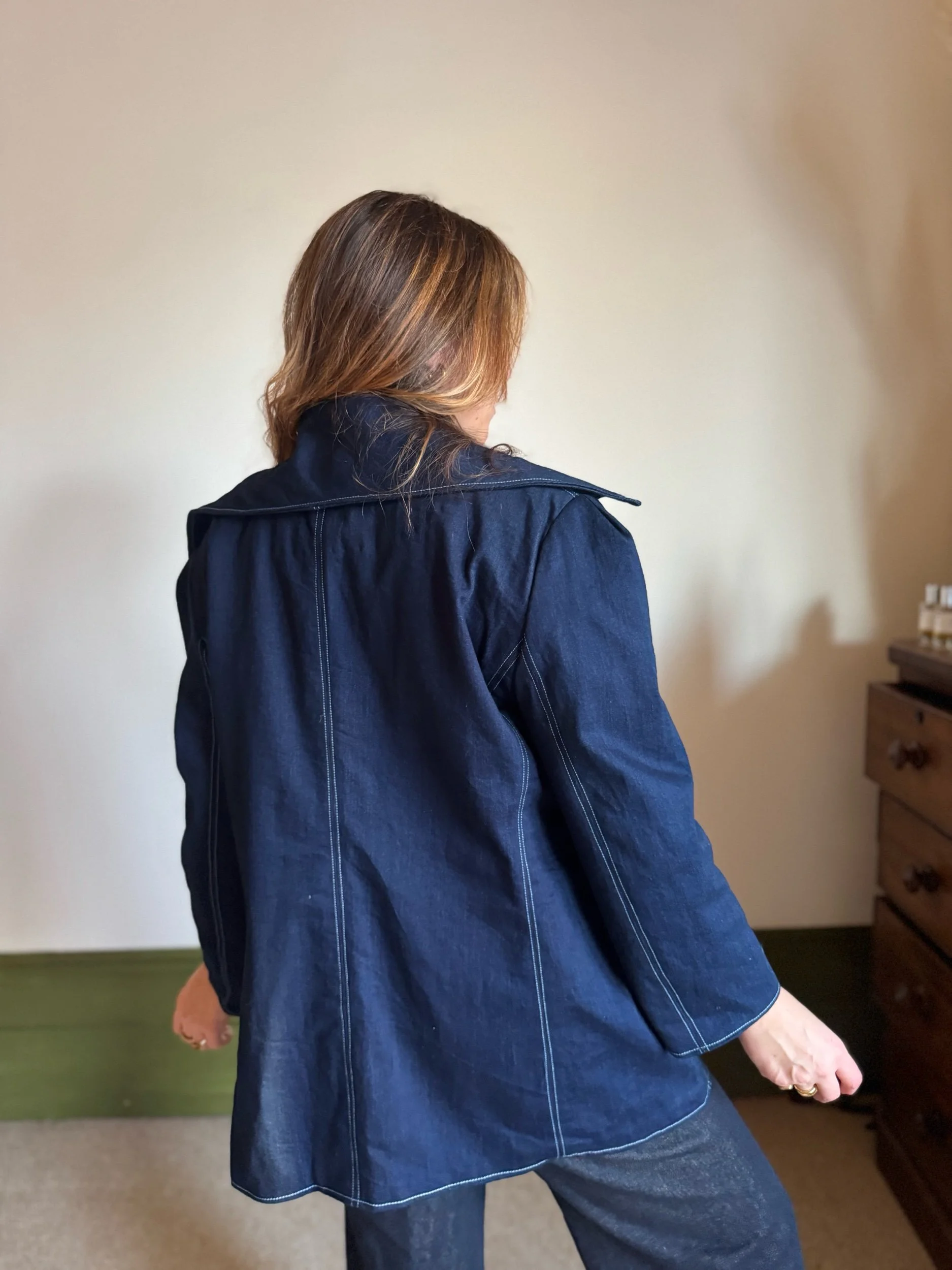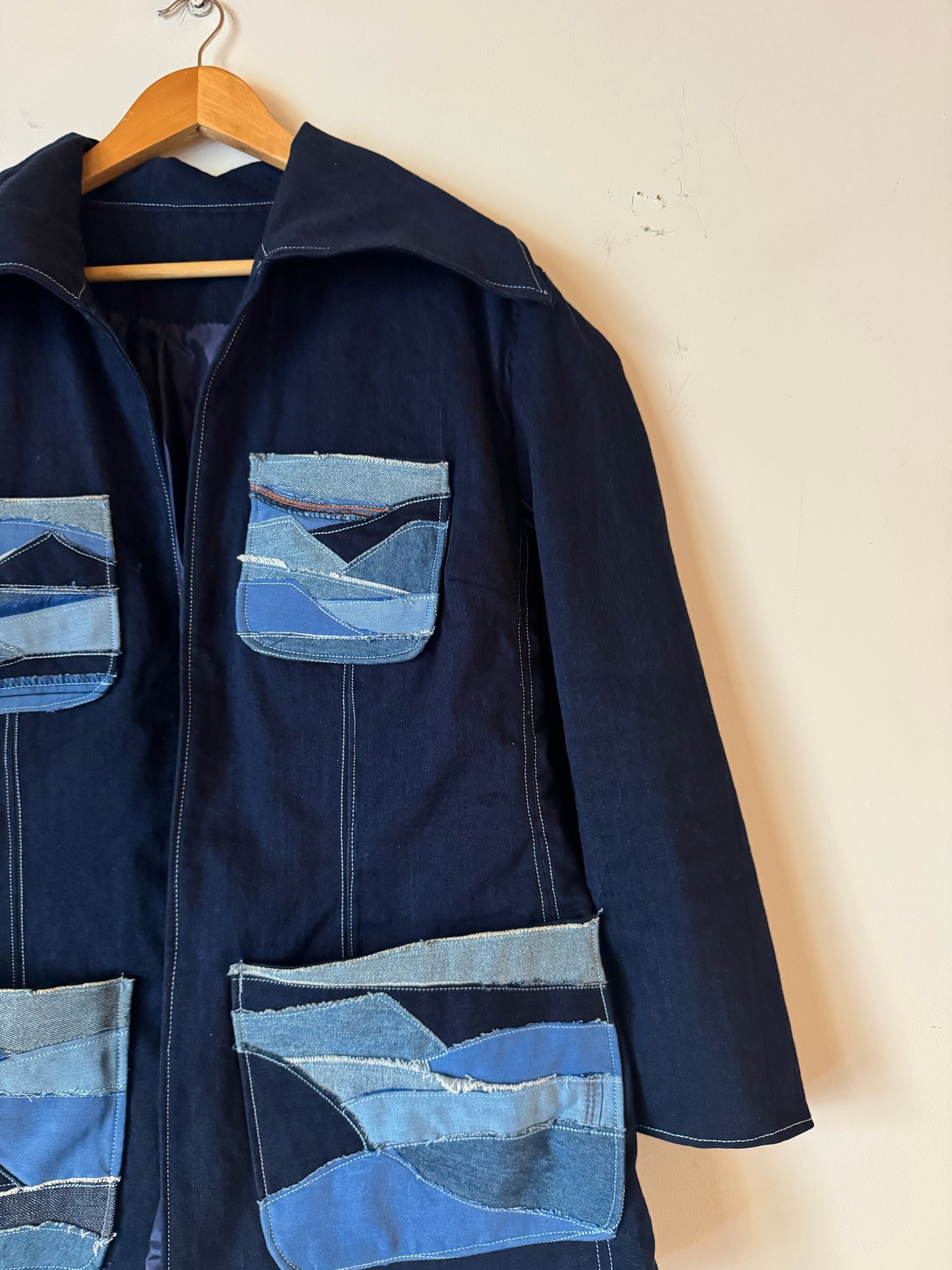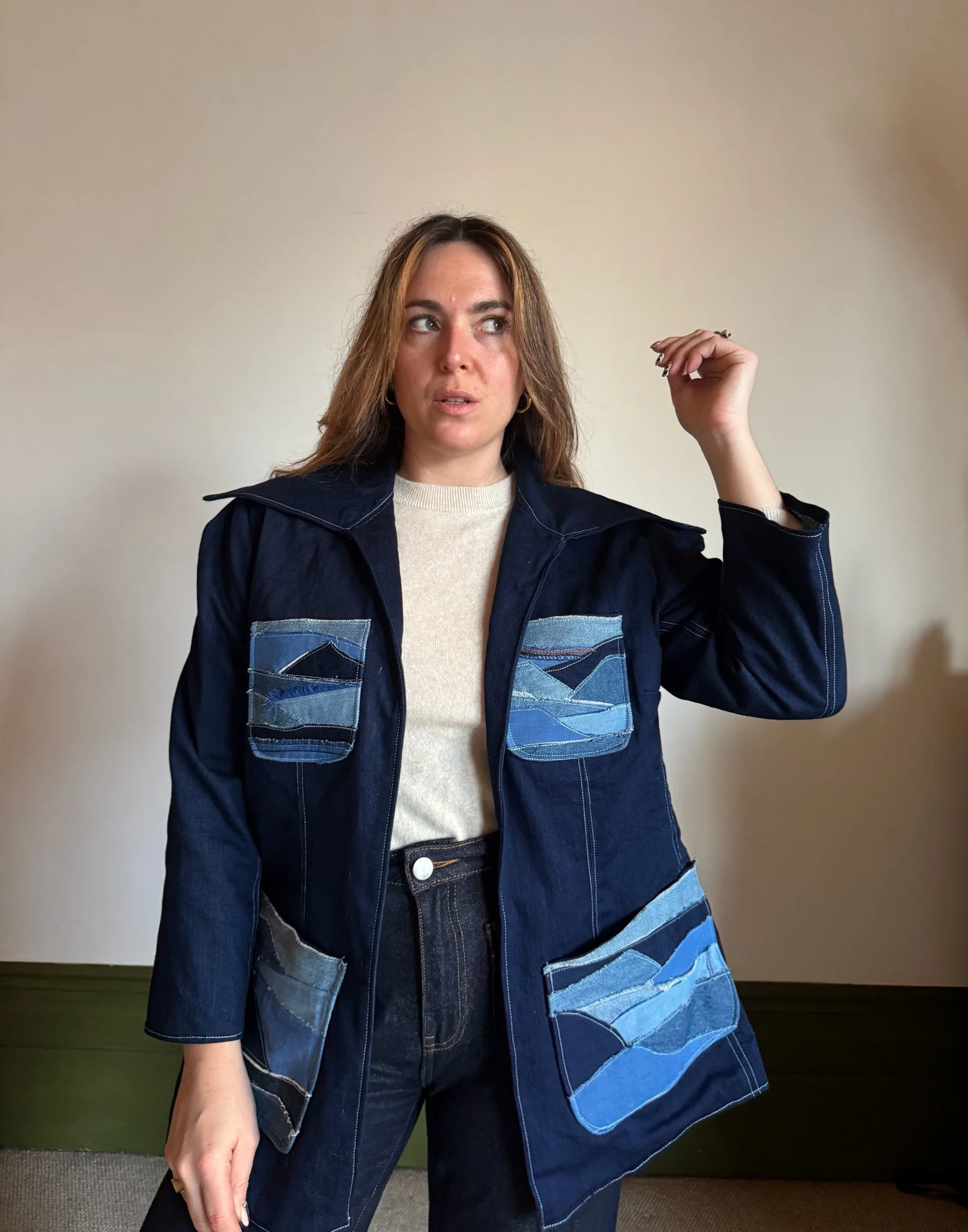 Hand made denim jacket- to a 70s vogue pattern! Adore the workwear vibes and shade of the denim. The front pockets have raw patchwork denim finishes. Fully lined