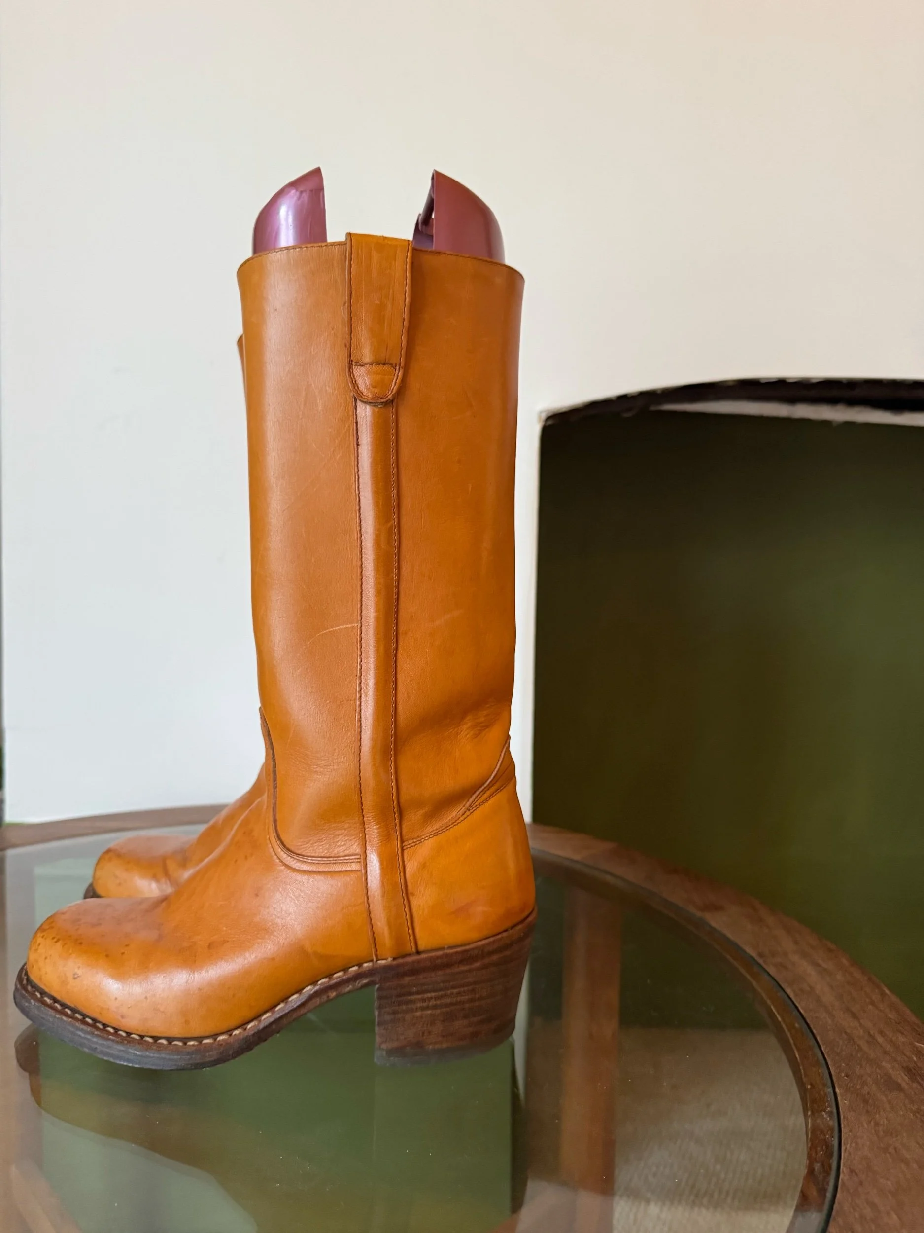Absolutely stunning Frye campus style boots in a gorgeous orangey/ tan leather