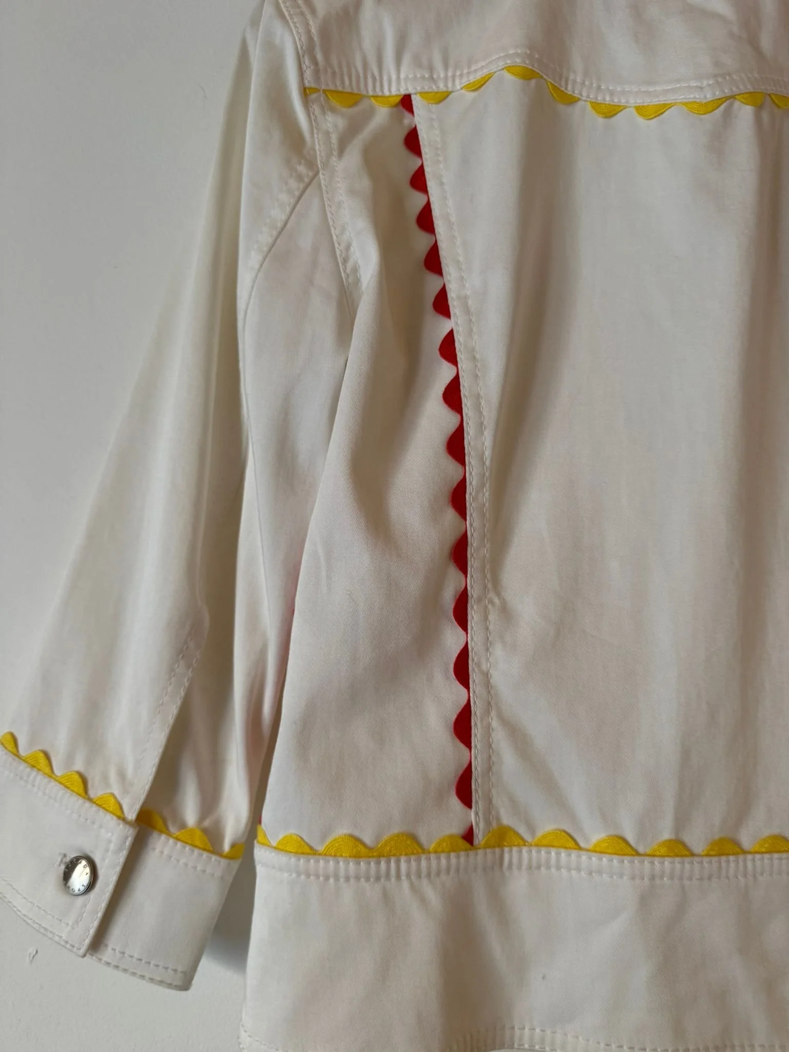 80s/90s Escada jacket! With cute tic rac detailing in a primary palette. The cotton is so premium! Slightly cropped shape and arms.