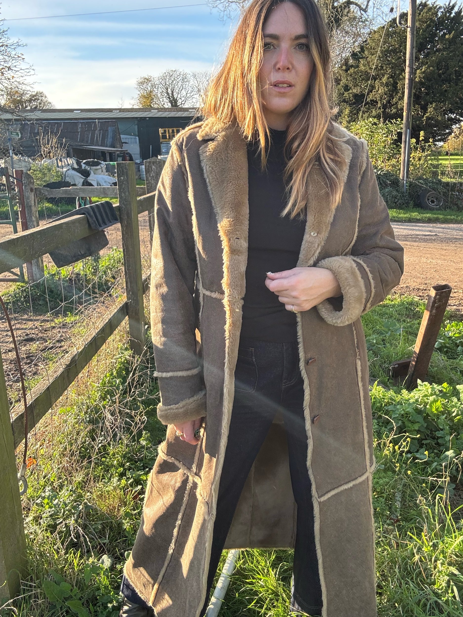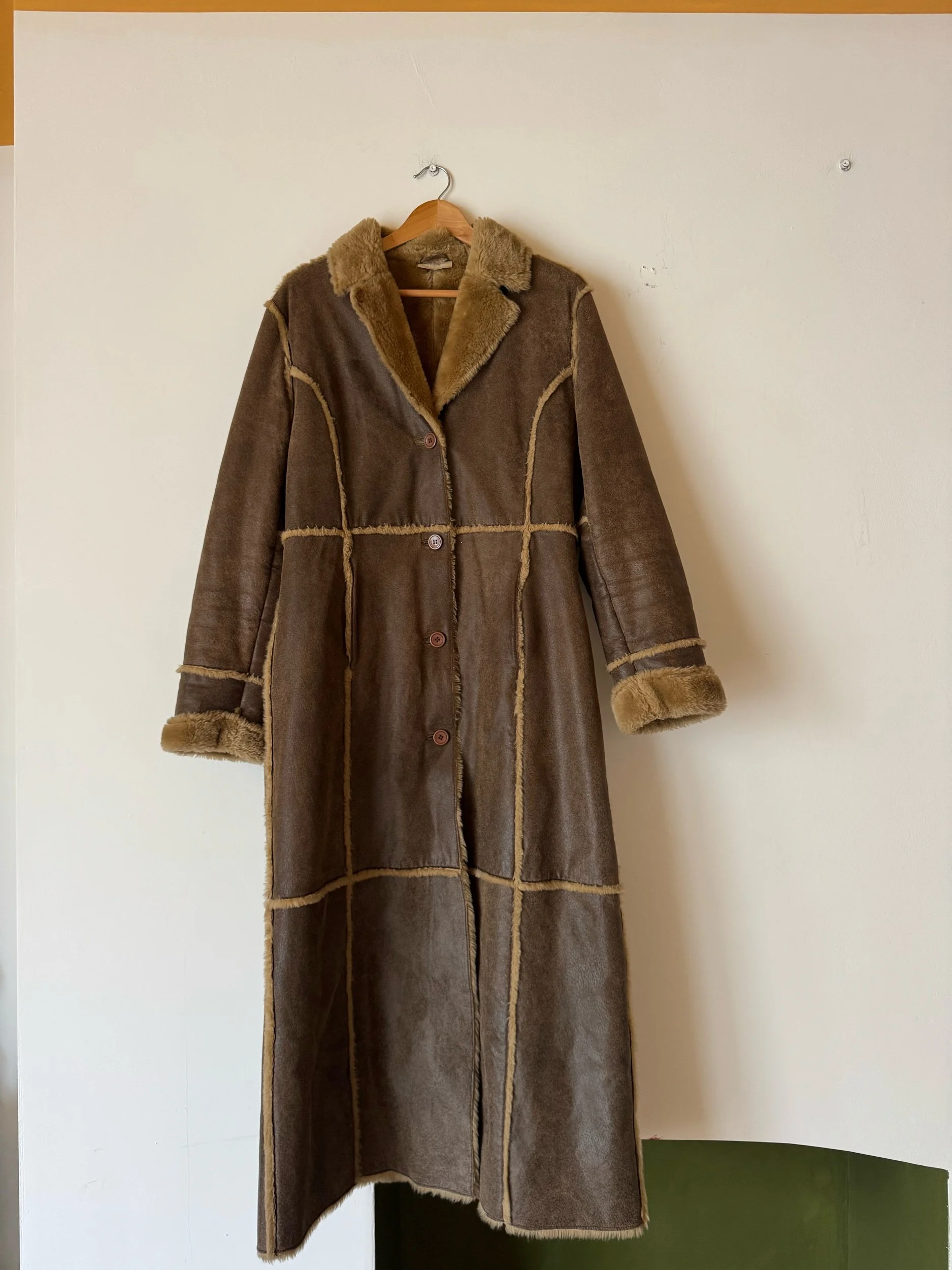 The perfect 90s Maxi length coat ! I absolutely love this one. The shape is very versatile and it’s very warm and cosy. Lovely soft leather with a faux fur patchwork design on the outer layer
