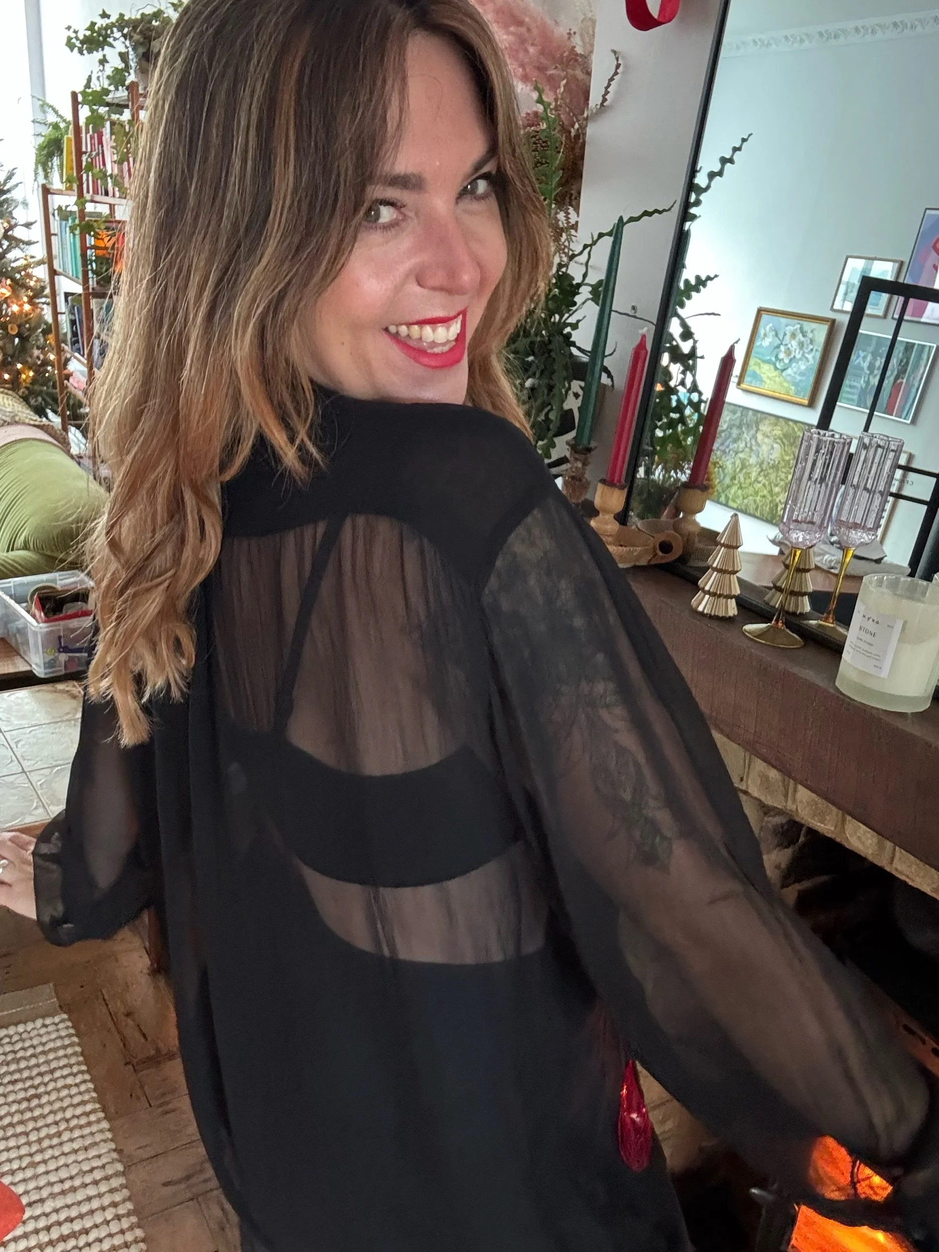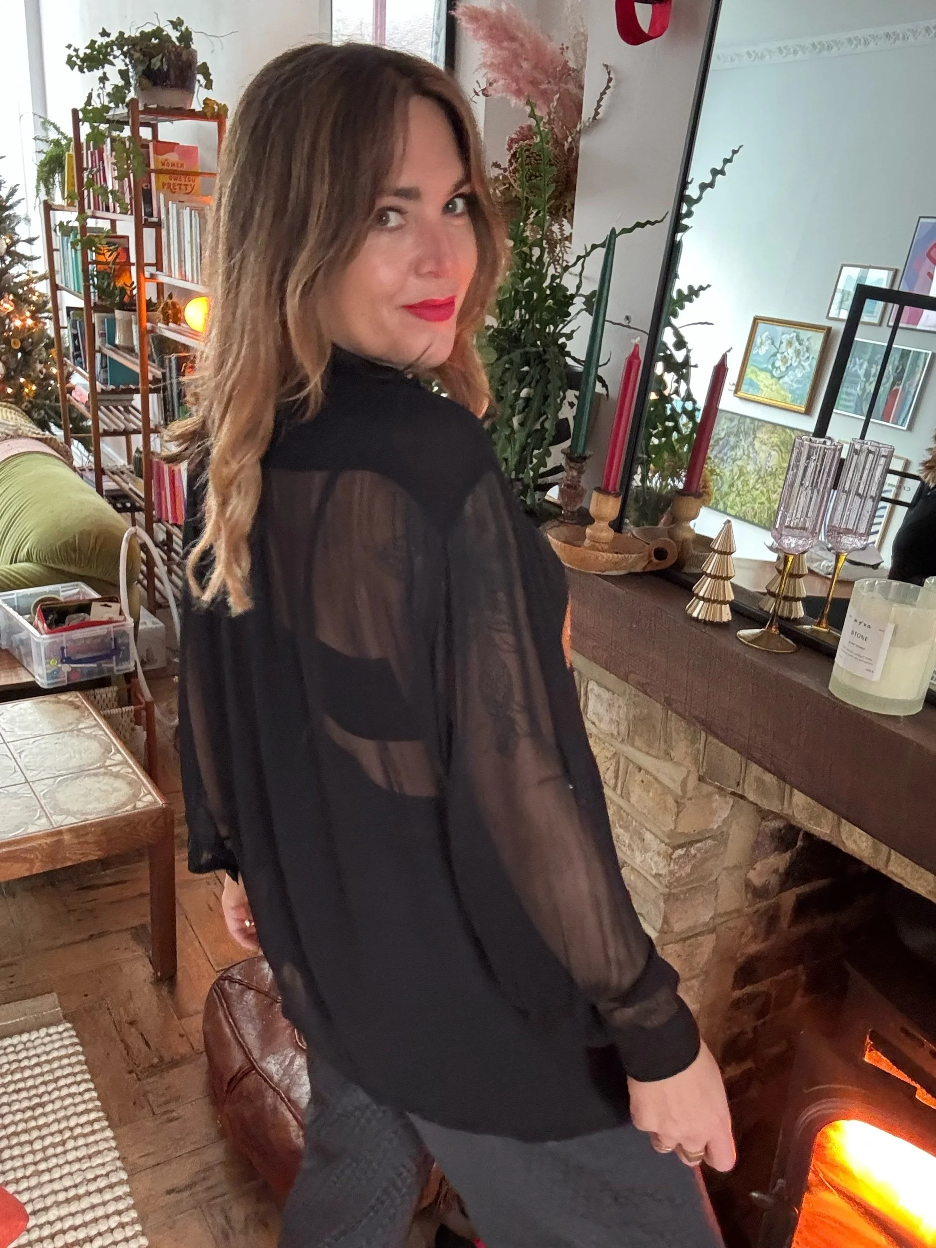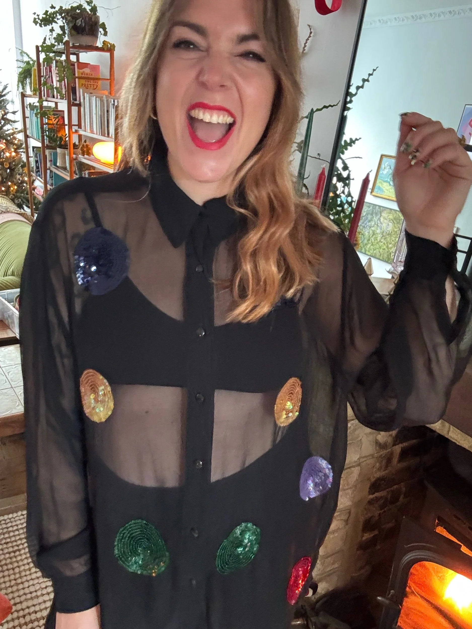 I really love this blouse - the mesh, the shape, the polkadot sequins- everything! Looks so chic with an all black outfit. Subtle enough to add a little razzle dazzle but not OTT